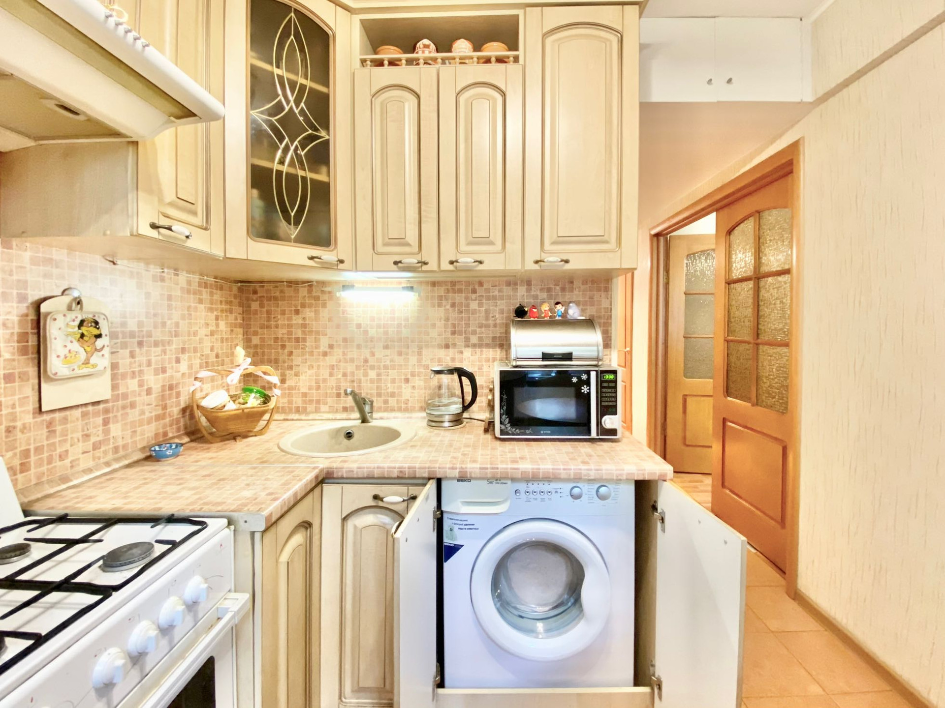 ✅ В квартире остается кухонный гарнитур, газовая плита, керамическая мойка, стиральная машина, кухонный уголок.