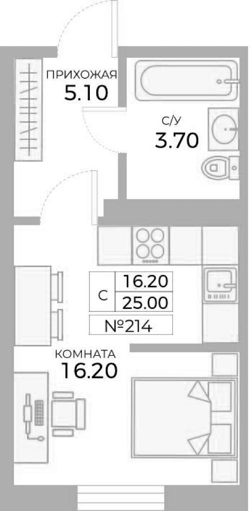 Общая площадь 25 м2