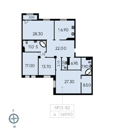 Общая площадь 169 м2