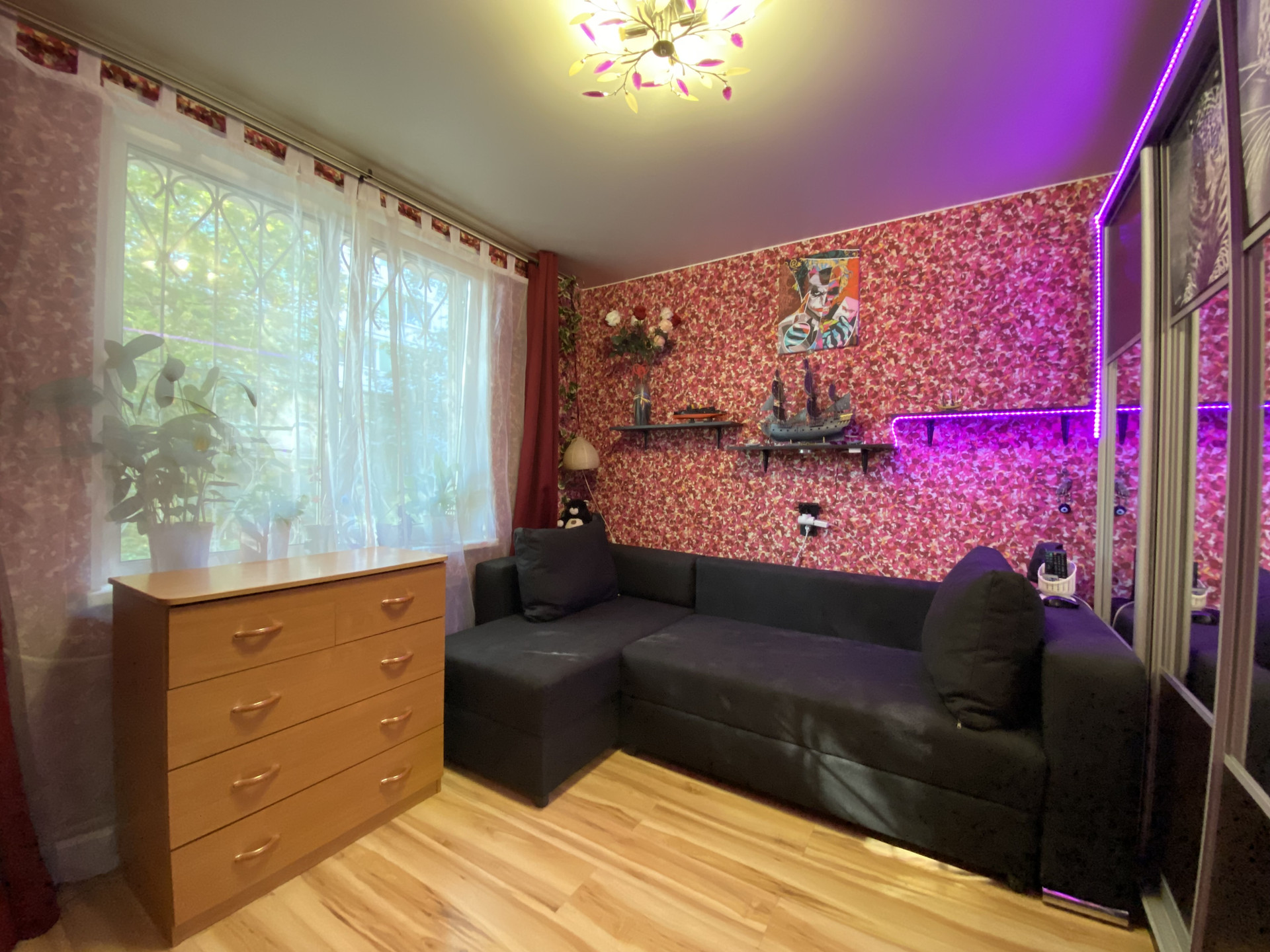 В квартире выполнен косметический ремонт. В комнатах натяжные потолки. Главный плюс окна выходят на две стороны и в 30 градусную жару в квартире прохладно, а зимой тепло.