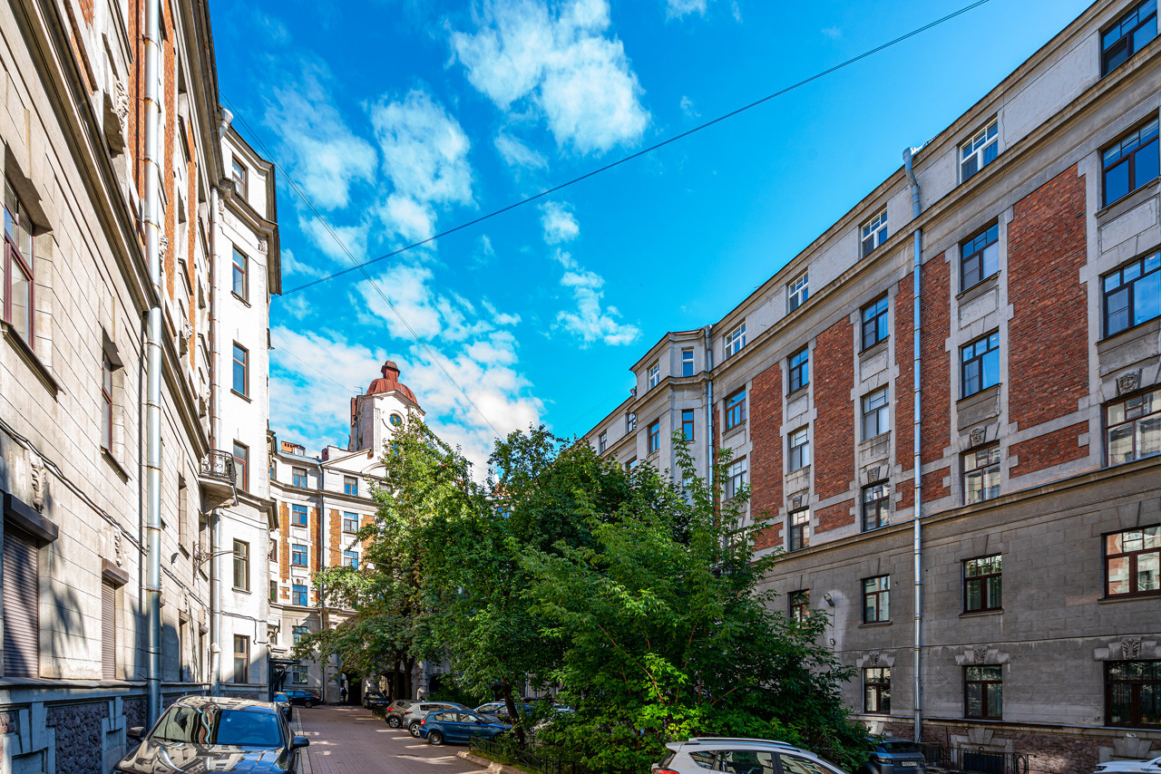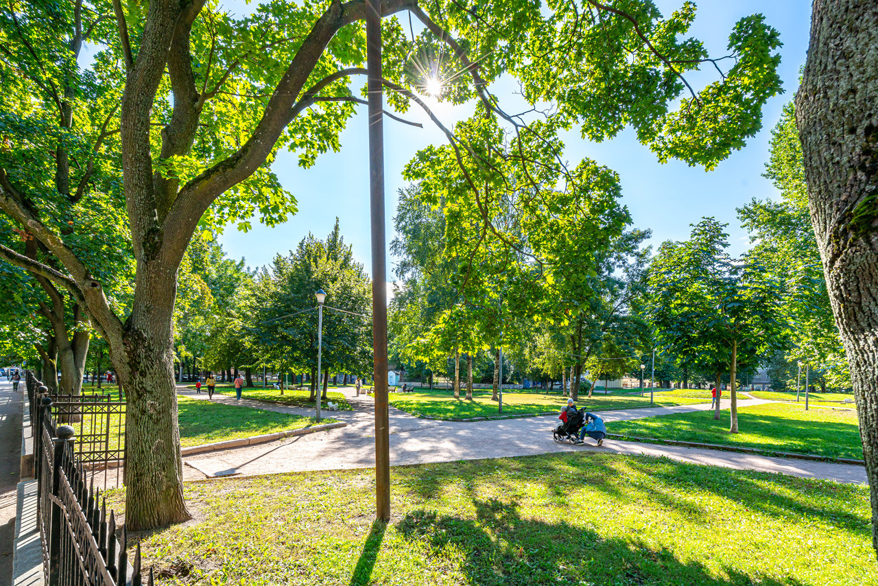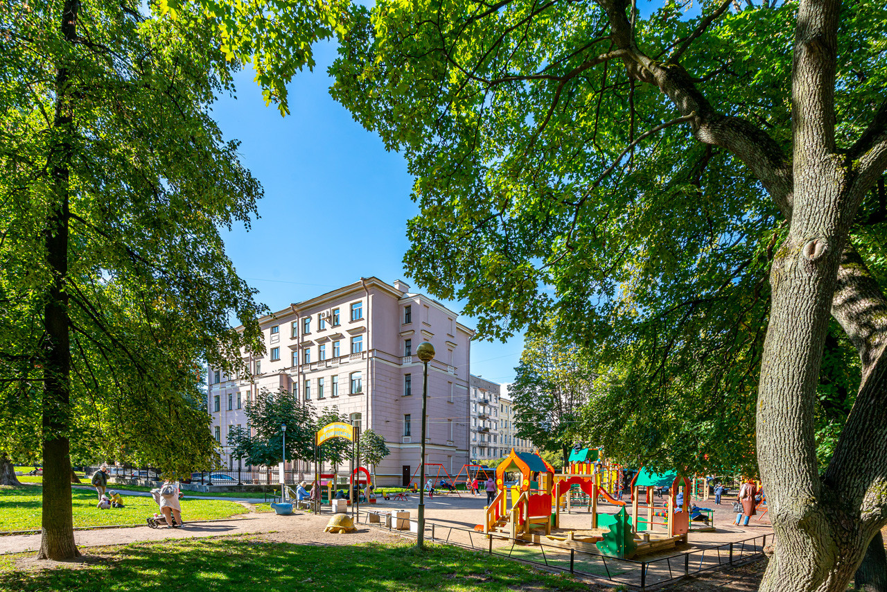 Напротив дома расположены Матвеевский сад, скверы, детские площадки. Вокруг большая зеленая зона, одна из самых больших в Петроградском районе.