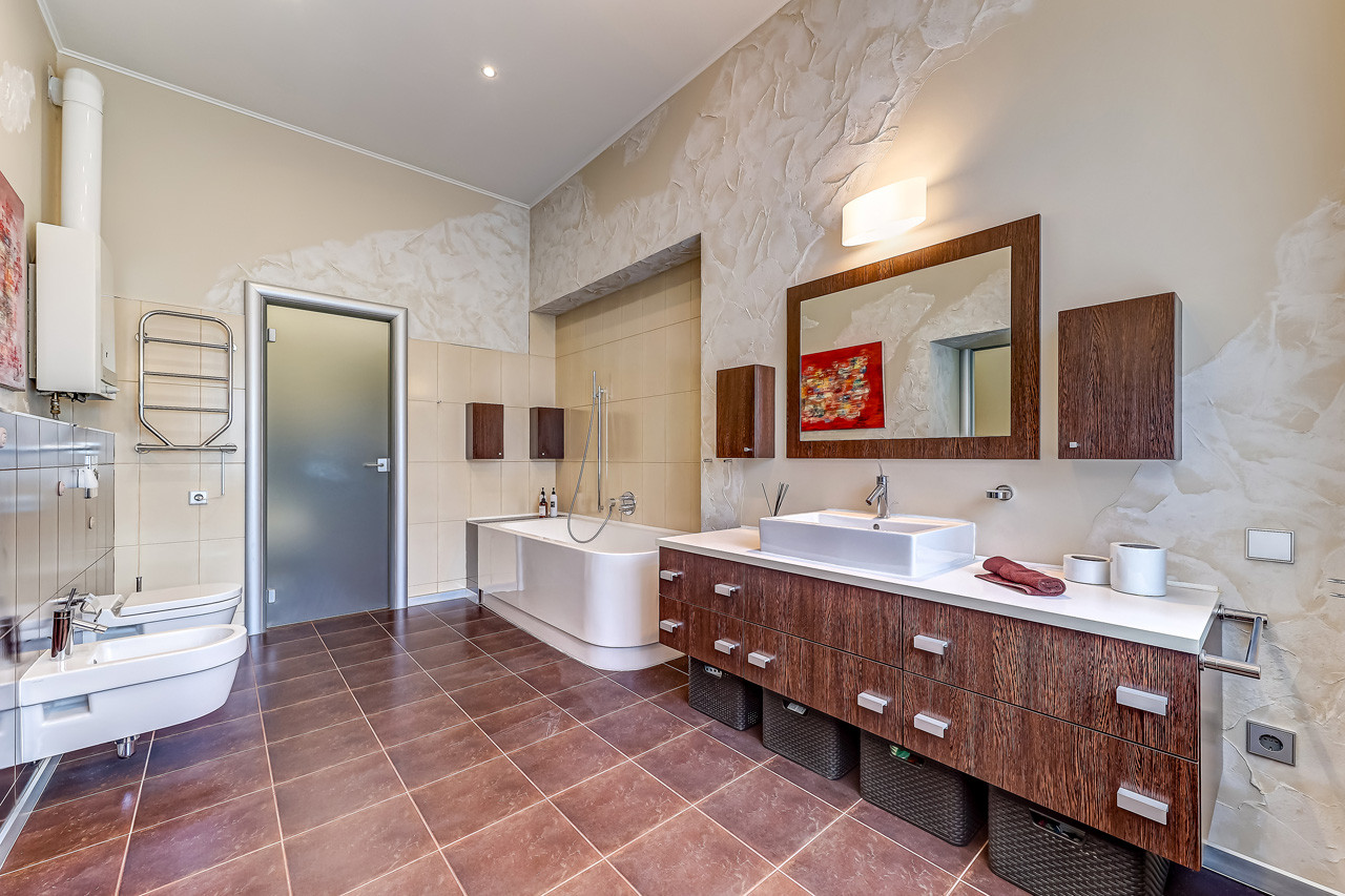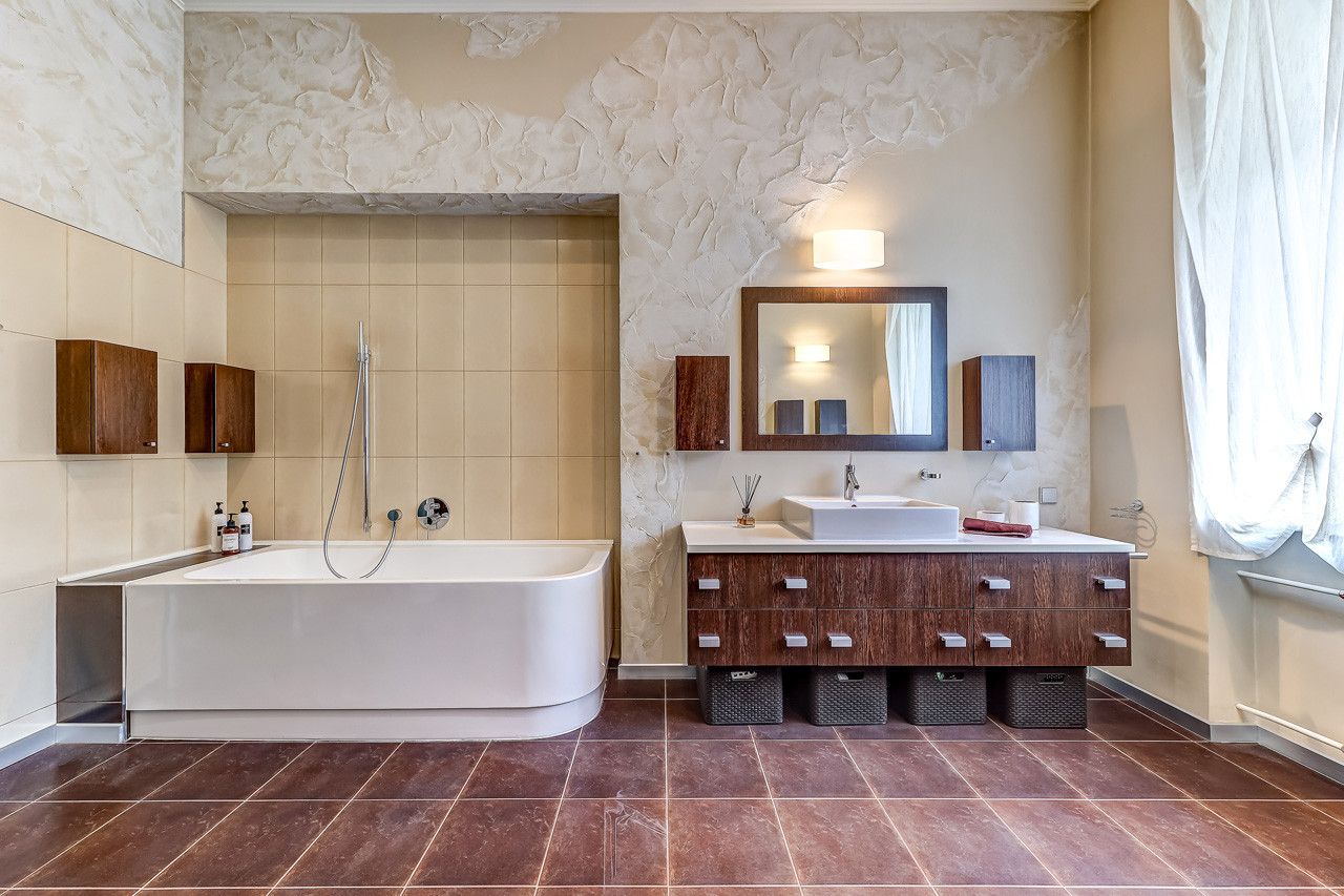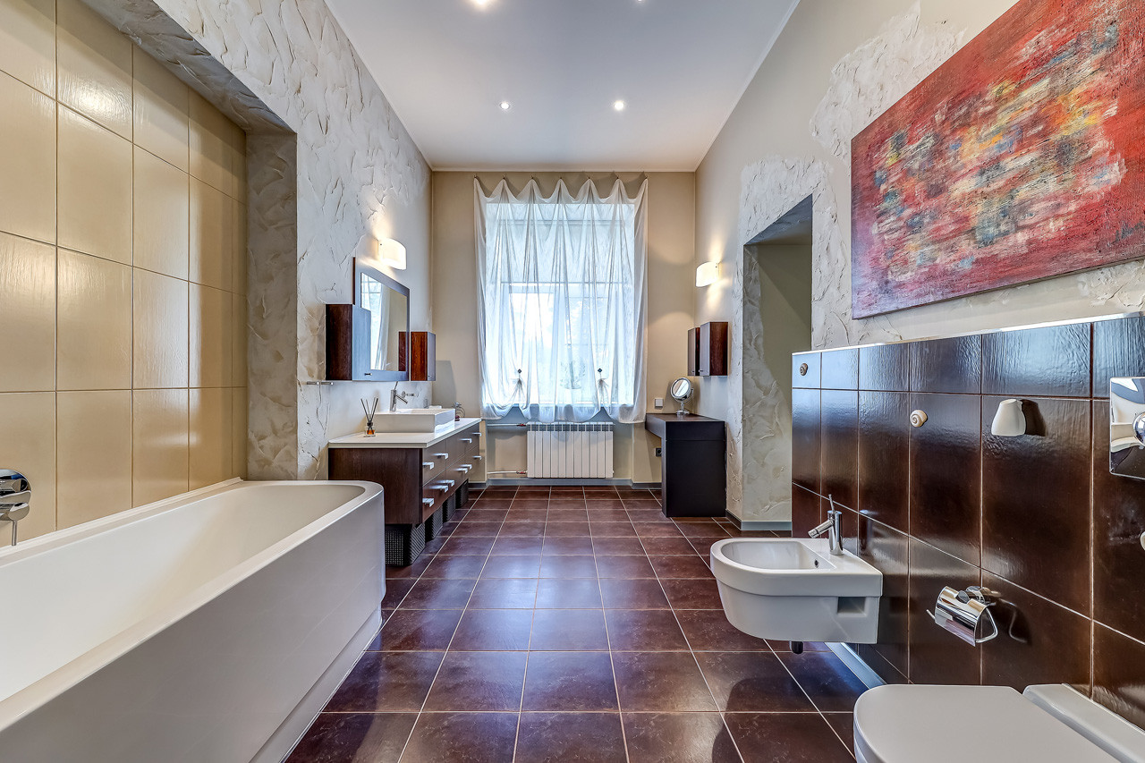 Установлена качественная итальянская сантехника, пол - дубовая доска, коллекционные предметы интерьера.