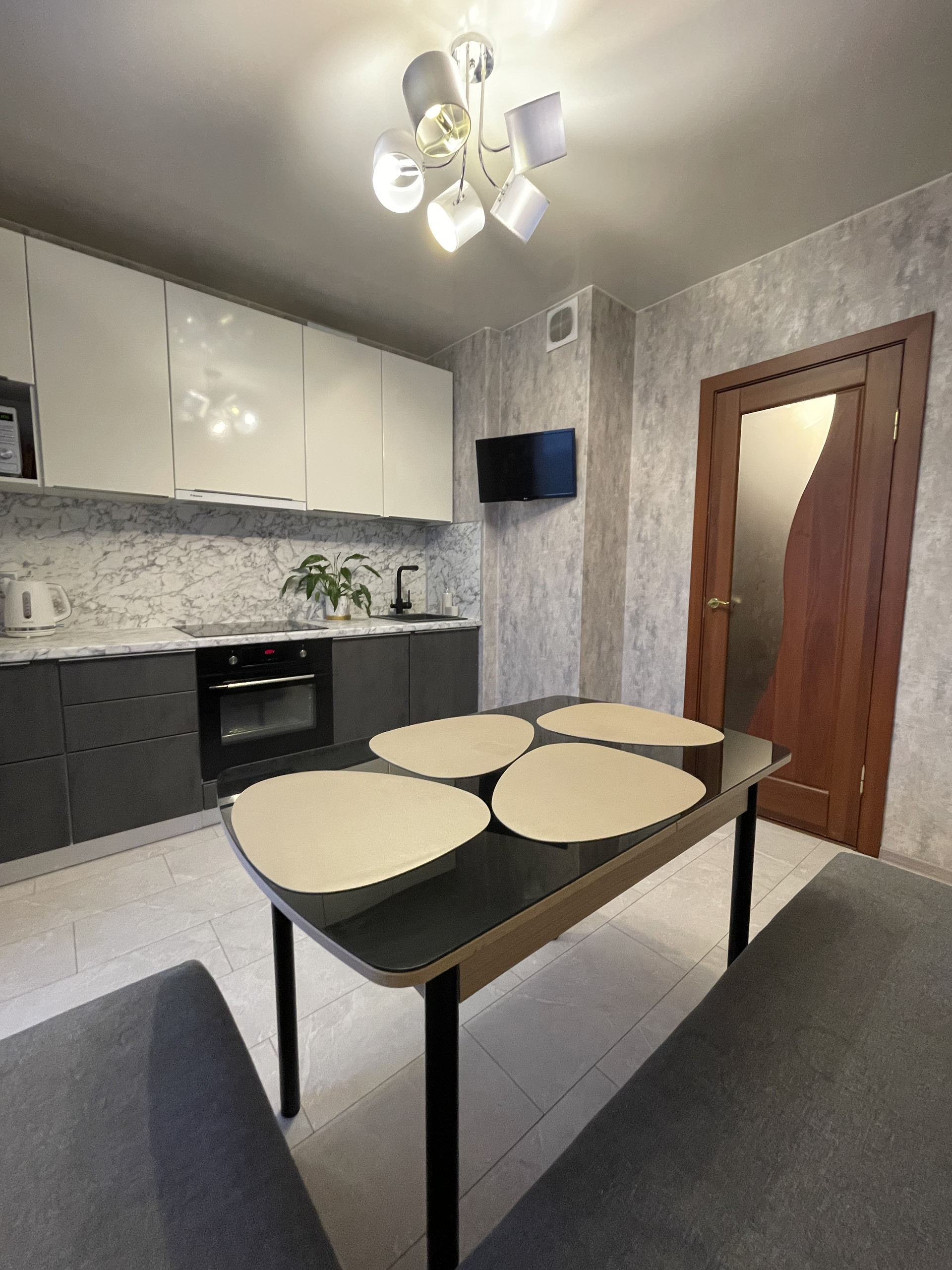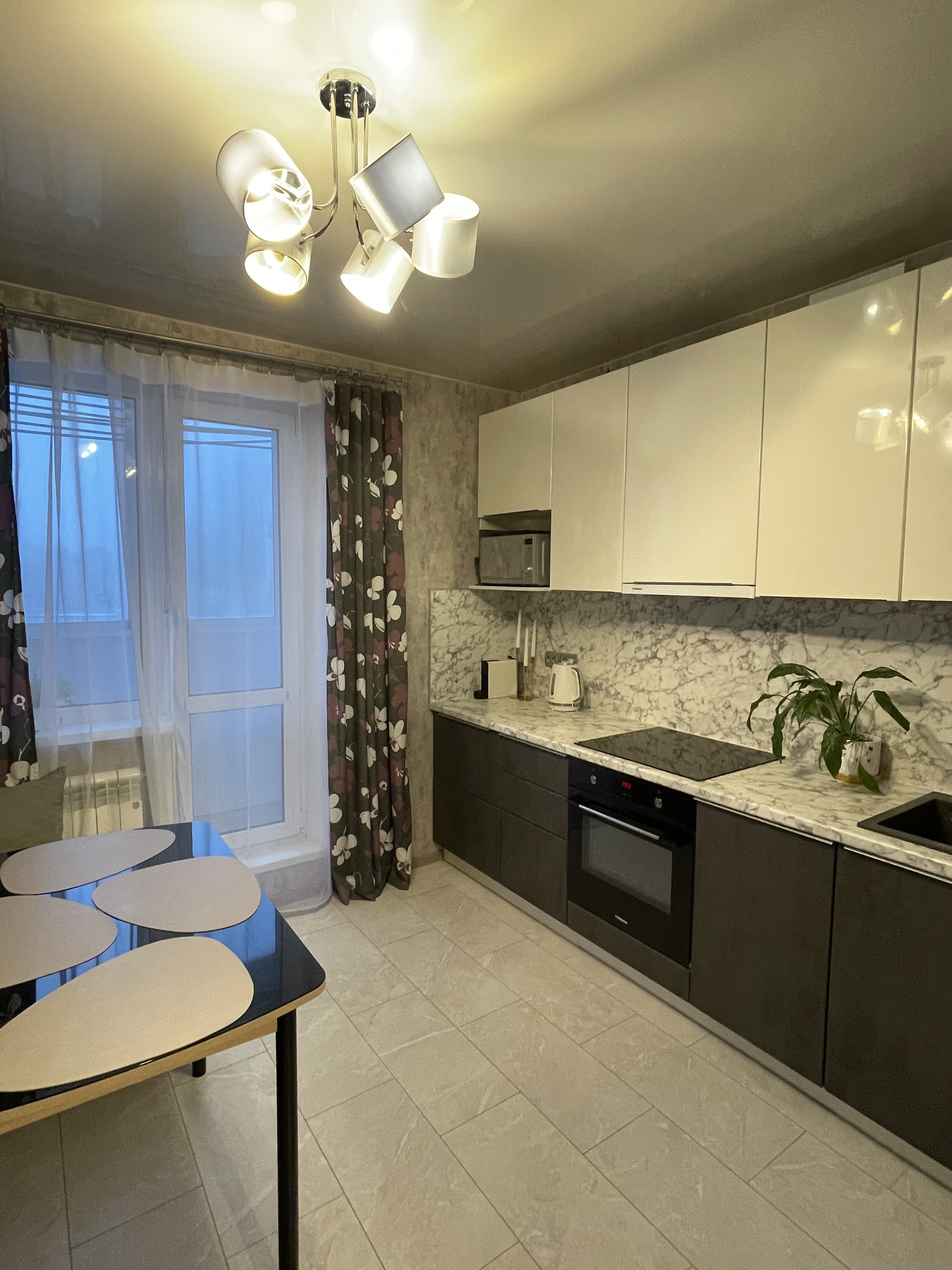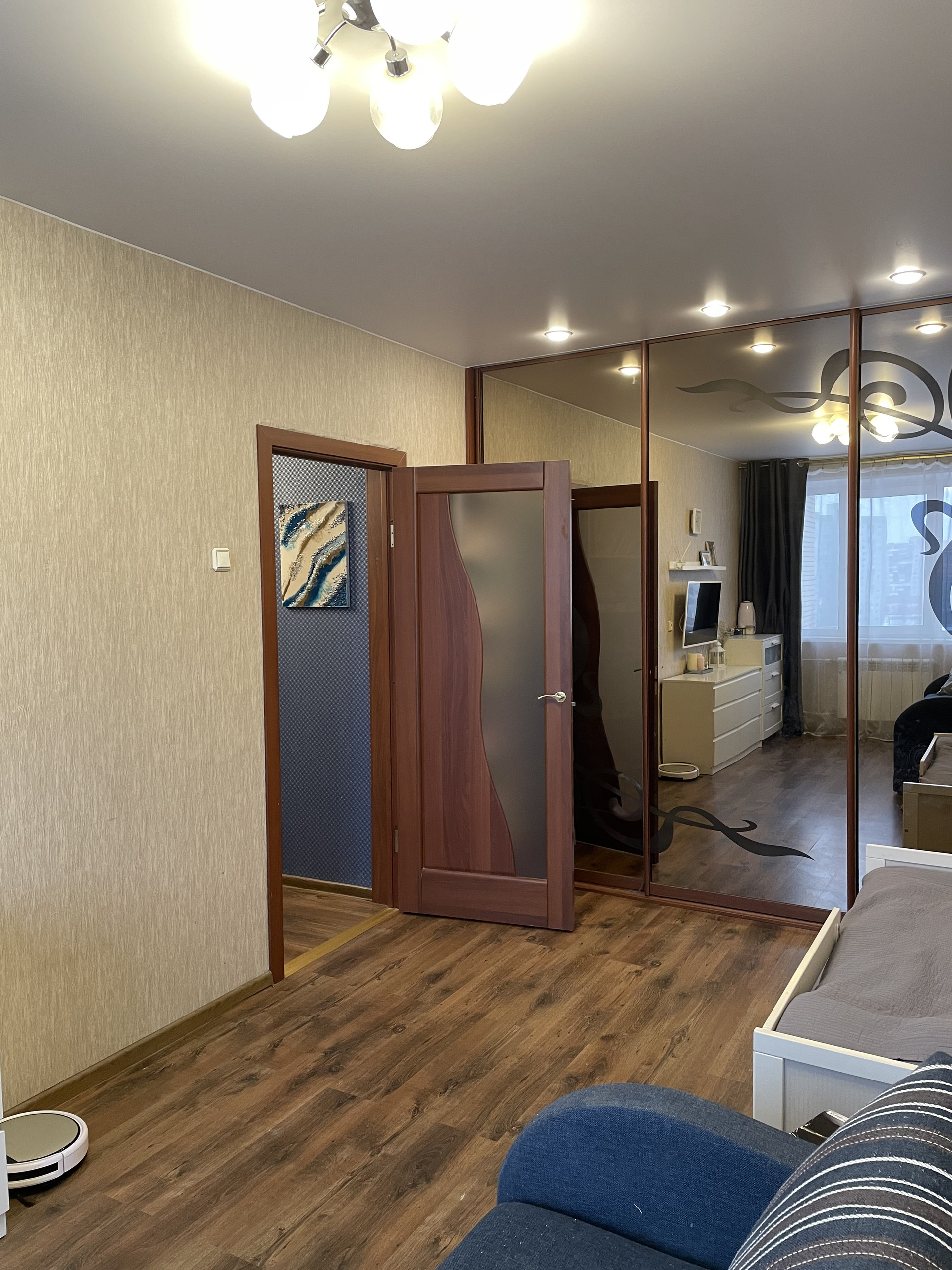 Идеальная кухня- гостиная. Кухня изготовлена на заказ с увеличенными вместительными шкафами. Большой встроенный шкаф в комнате. Красивый уютный застекленный балкон.
