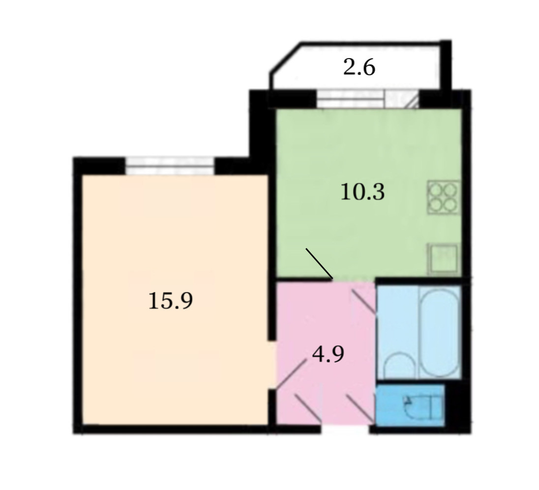 Жилая площадь 15.9 м2