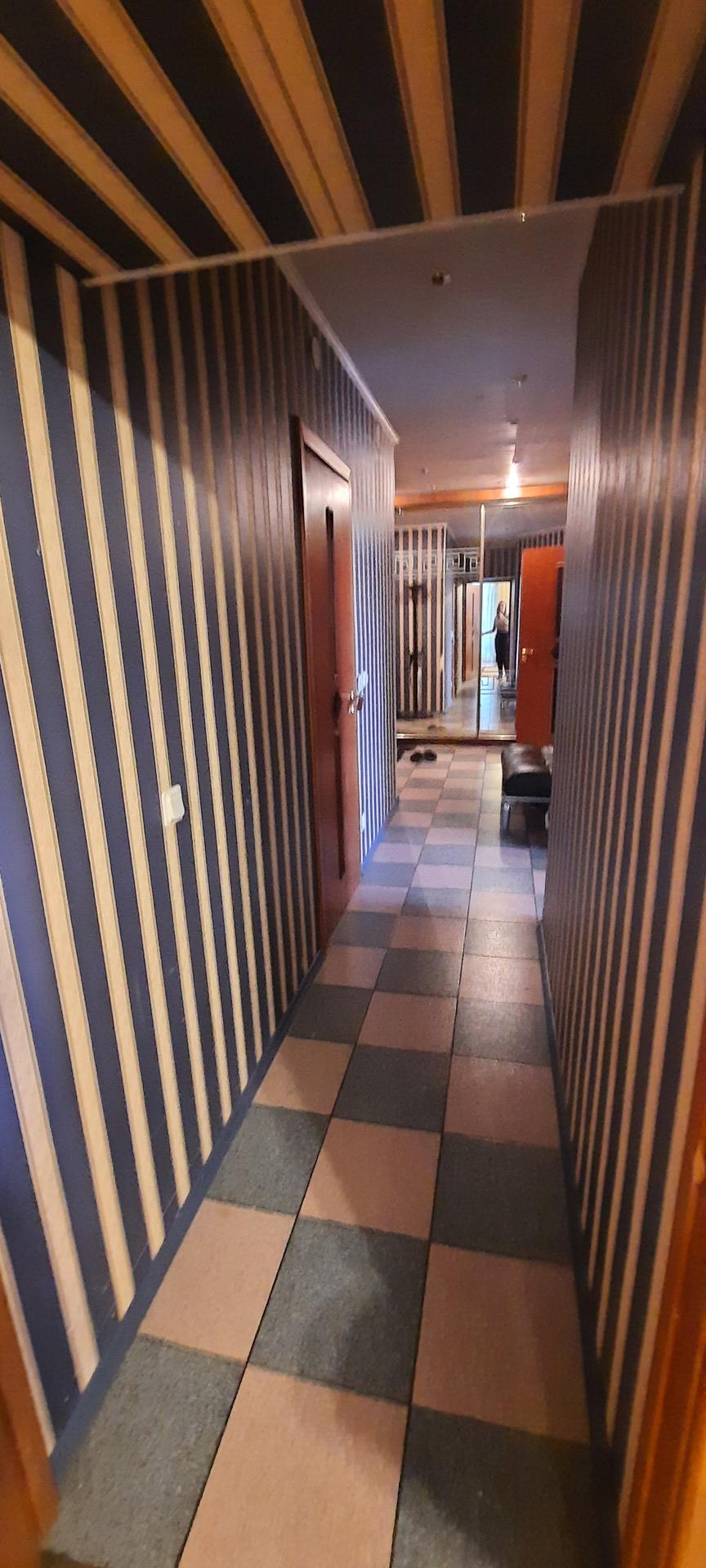 Просторный коридор, дорогая кухня.