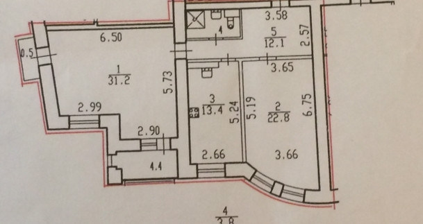 Комнаты изолированные 31+22,8 кв.м. кухня 13,4 кв.м.