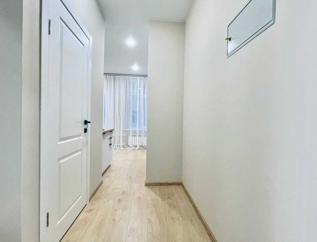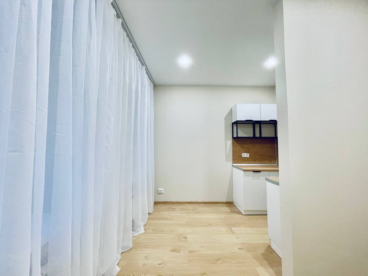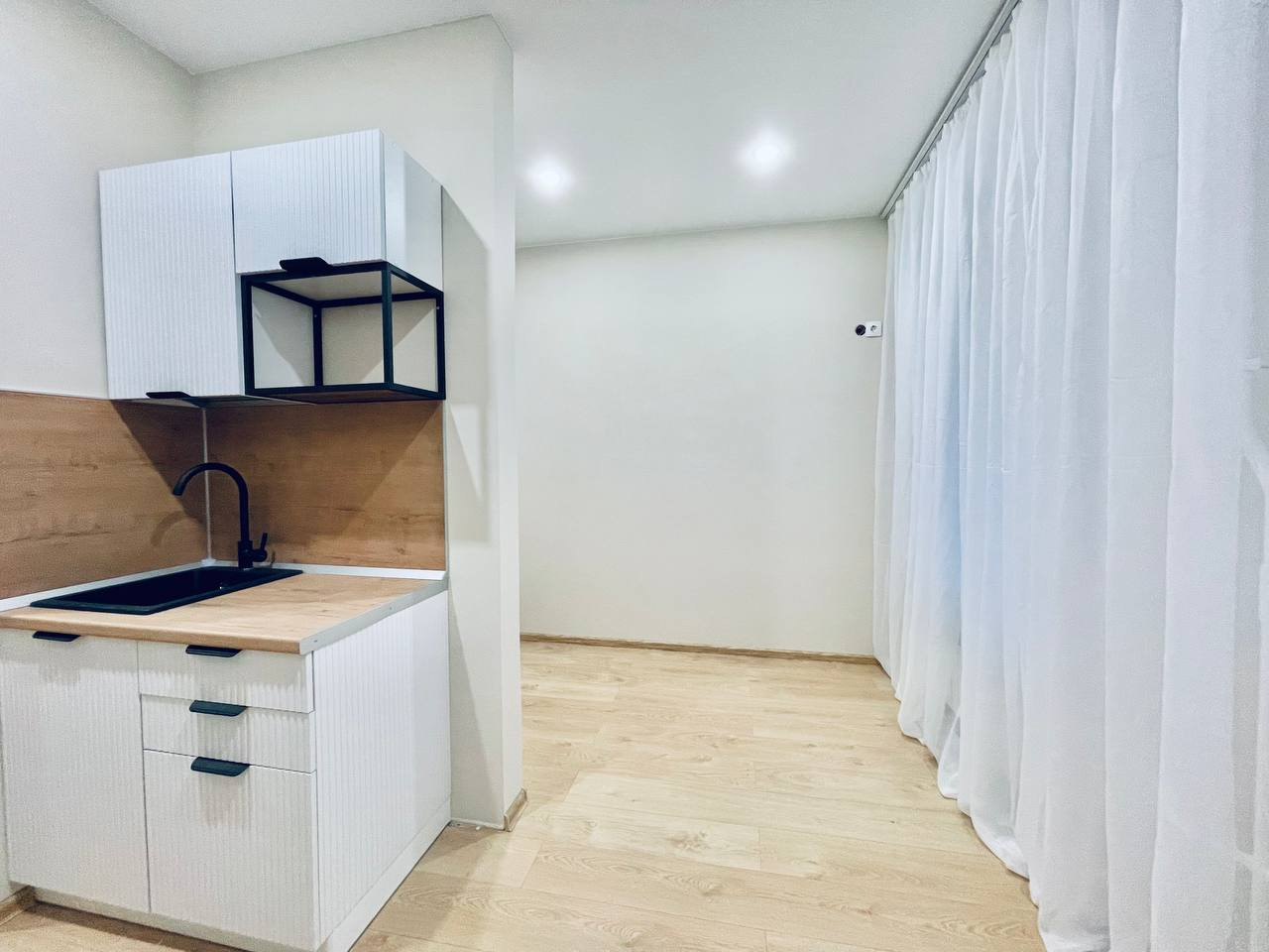 Квартира расположена на 5 этаже, великолепное расположение, в комнате два окна, которые выходят во двор, смотрят на Юго-Запад, что обеспечивает много света в квартире. Общая площадь 17.9 м2. Функциональная планировка включает в себя: комнату с кухонной зоной (11.6 м2), ванная комната облицованная плиткой, пол с подогревом, в прихожей есть место под шкаф.