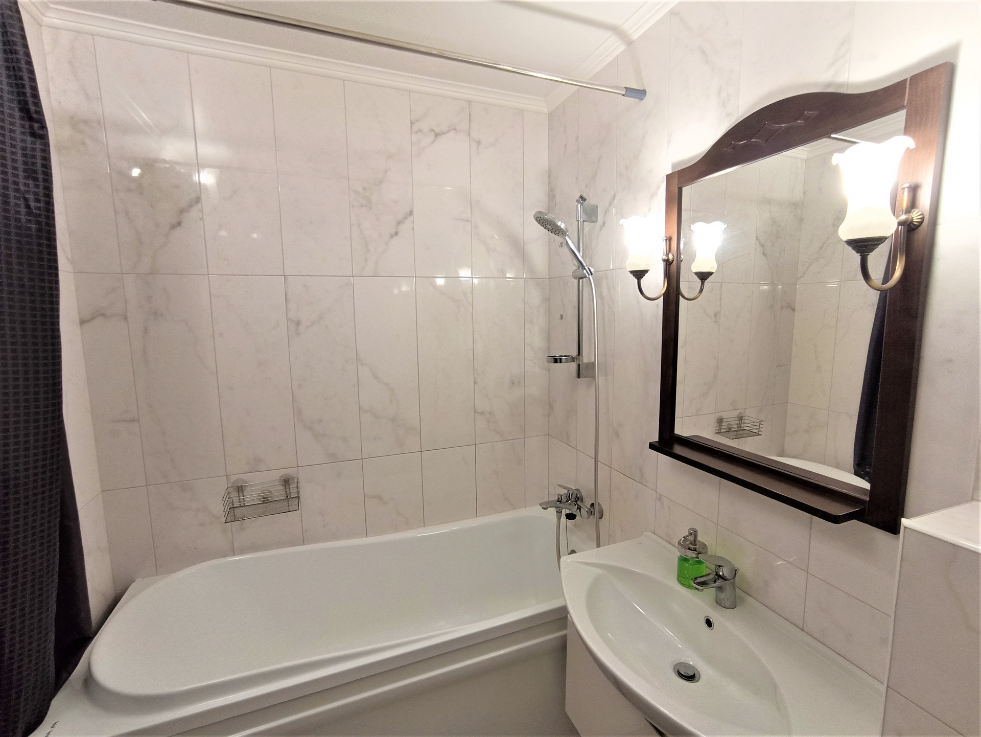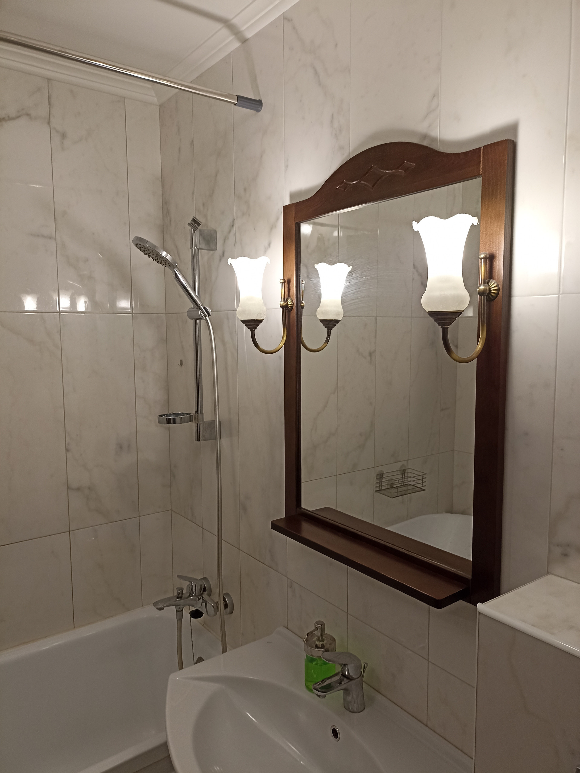 -Стиль выдержан во всем, даже светильники в ванной комнате.