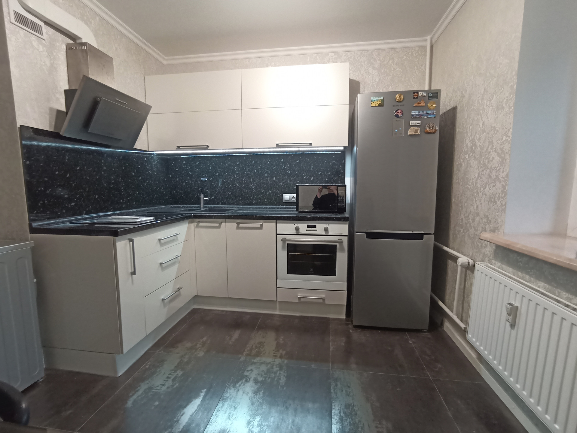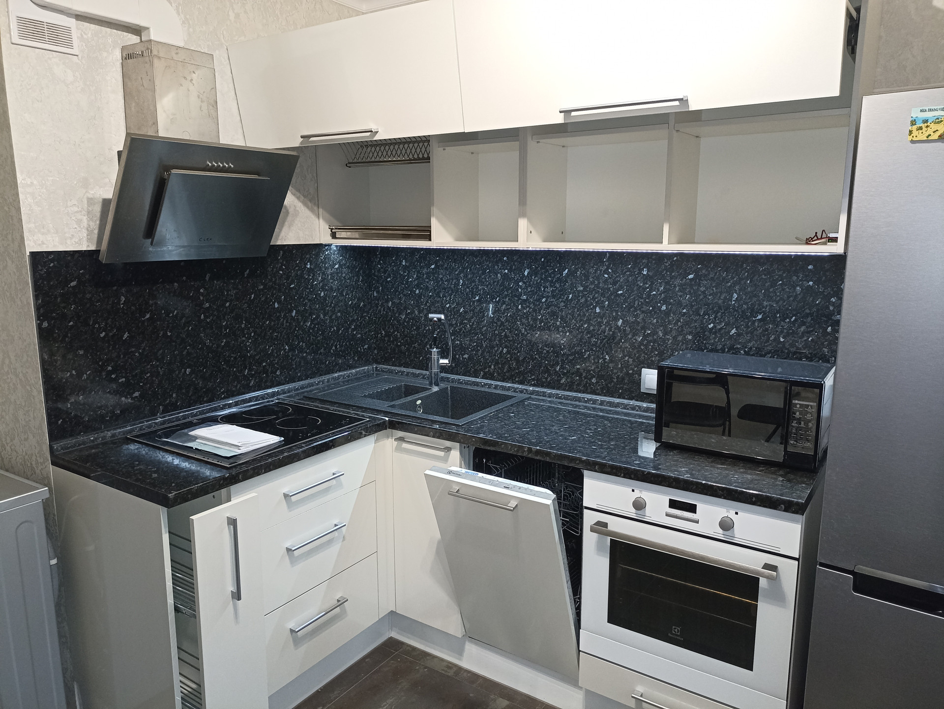 -Встроенная кухня с посудомойкой, духовым шкафом, плитой