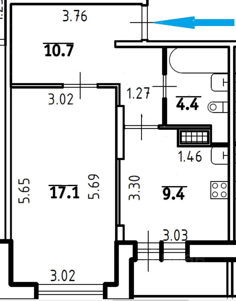 Жилая площадь 17.1 м2