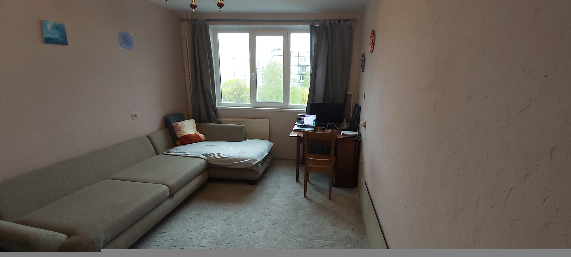 квартира ДВУХСТОРОННЯЯ. в комнате 14 м балкон и гардеробная. кухня 9 м