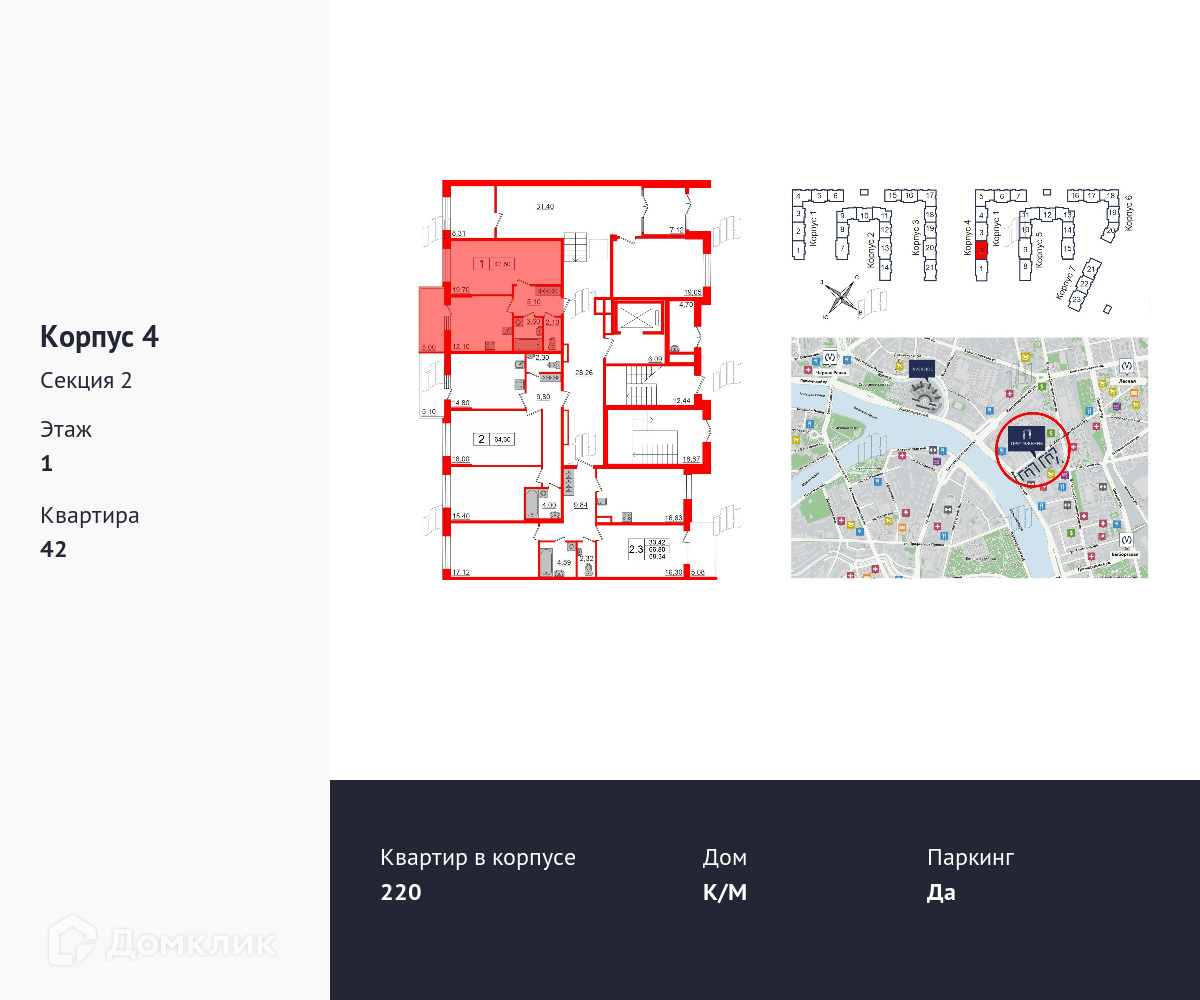 1-комнатная квартира, 42.6 м2, этаж 1 / 9, на продажу в Санкт-Петербурге, Литовская улица, 2Х