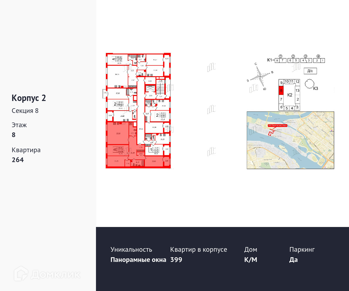 3-комнатная квартира, 128.8 м2, этаж 8 / 8, на продажу в Санкт-Петербурге