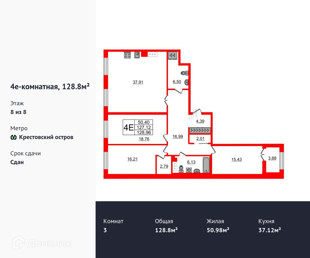 Общая площадь 128.8 м2