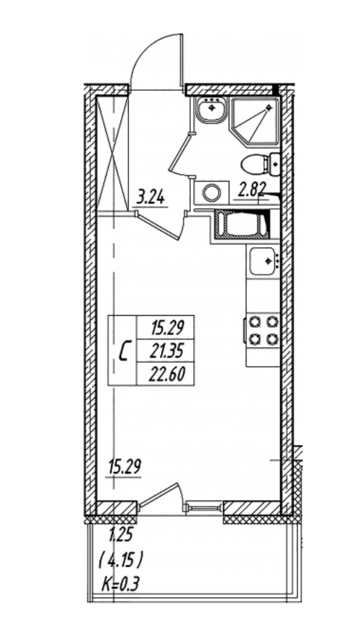 Общая площадь 21.35 м2