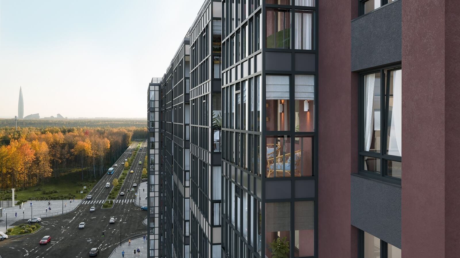 В квартире – уникальные окна увеличенной площади и панорамное остекление лоджий. Цвета конструкций витражей и окон сочетаются с оттенками фасада, придавая зданию умеренную строгость. В проекте три детских сада и школа. Благоустроенные дворы с тематическими площадками для игр и зонами для спорта и отдыха оборудованы видеонаблюдением. Для автомобилей жильцов предусмотрены два многоуровневых паркинга и гостевые парковки.