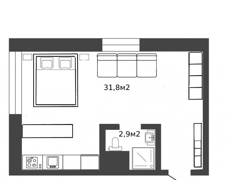 Жилая площадь 28.9 м2