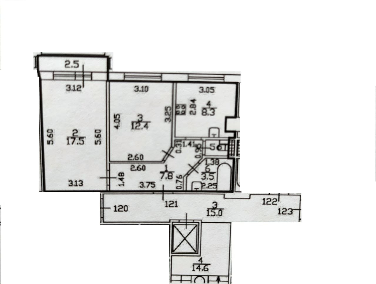 Общая площадь 50.5 м2