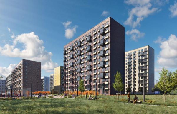 Дома образуют закрытый двор-парк, свободный от машин. На первых этажах будут размещены магазины, салоны красоты, фитнес-центры. Предусмотрено два надземных многоуровневых паркинга на 794 машиноместа и гостевые автостоянки по внешнему периметру зданий.