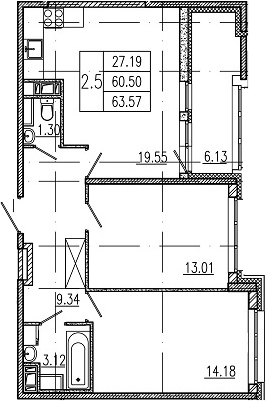 Общая площадь 63.5 м2