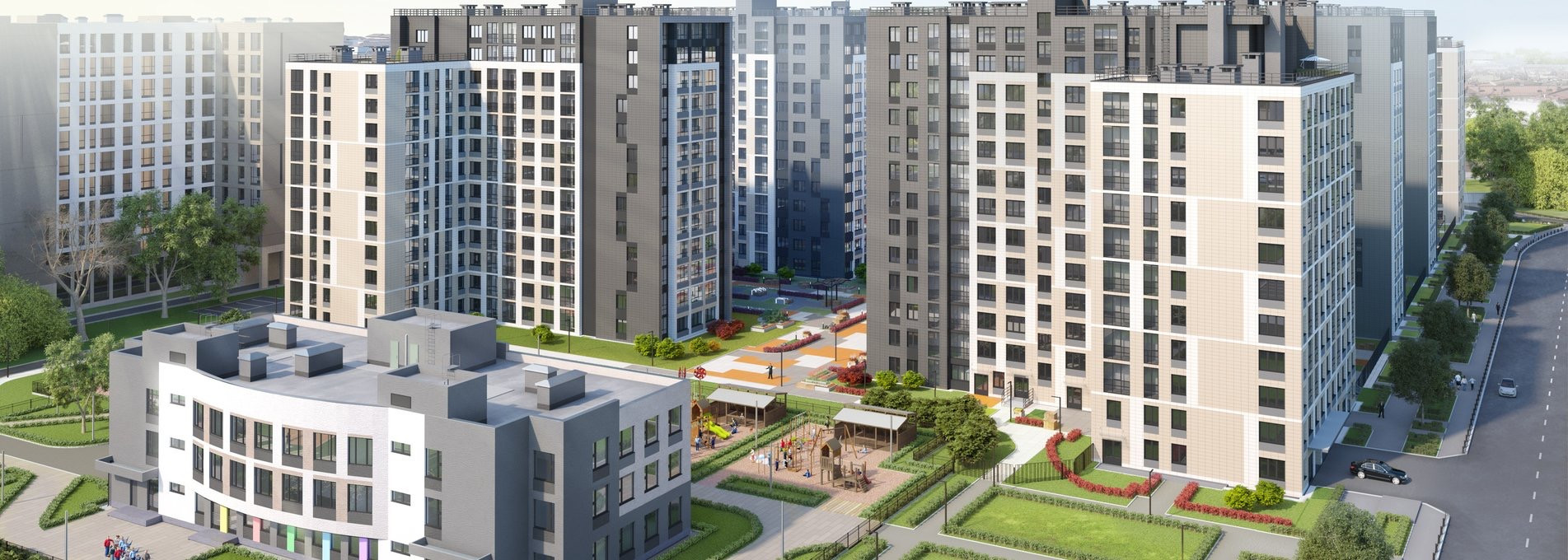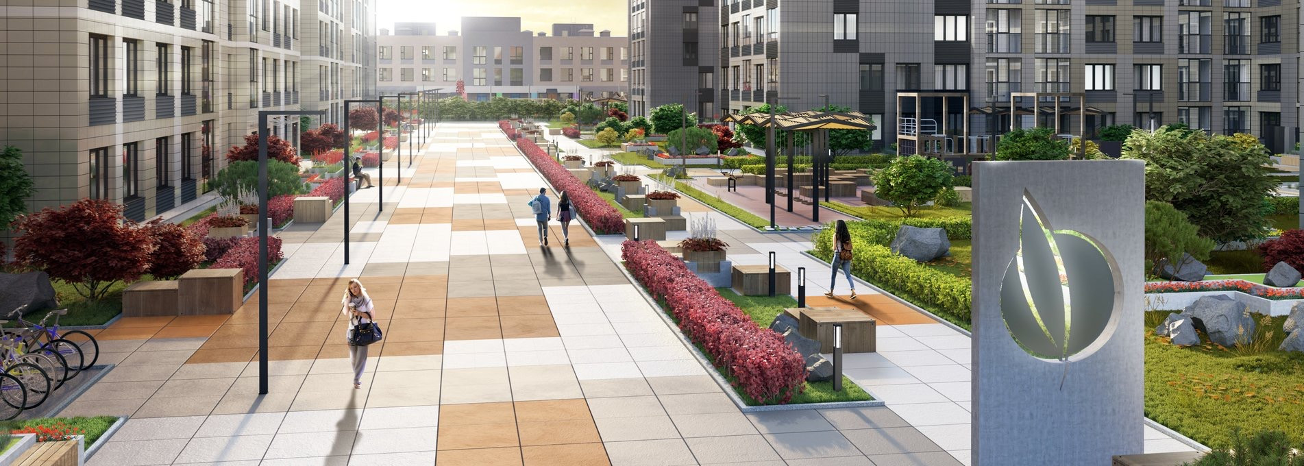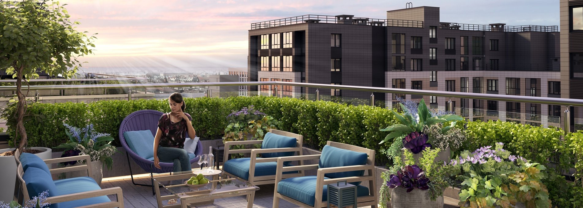 Жилой комплекс высокого комфорт-класса.За его пределами динамика мегаполиса ,а внутри всегда тихая и приватная атмосфера.