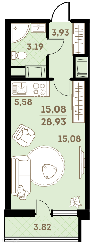 Общая площадь 28.4 м2