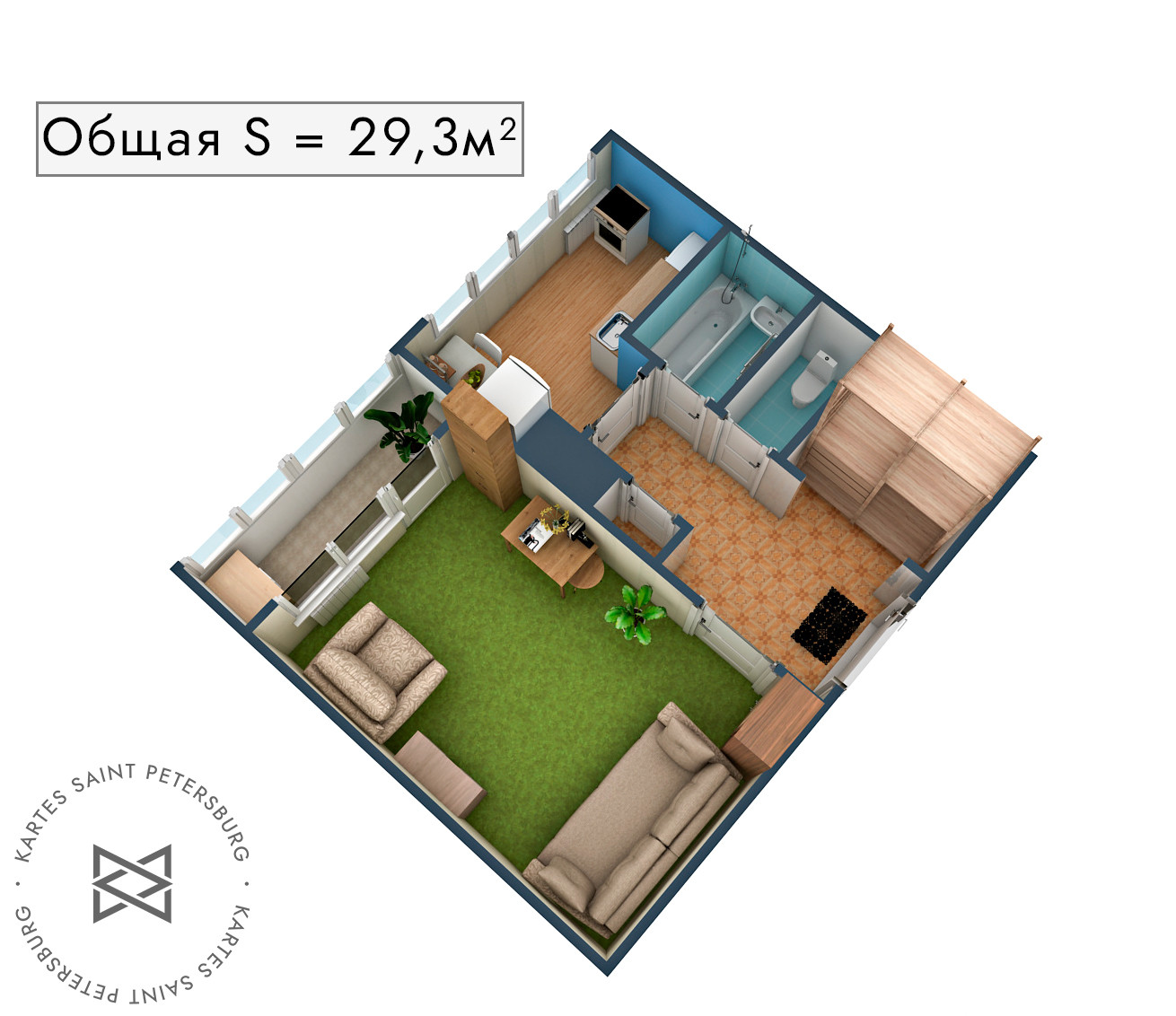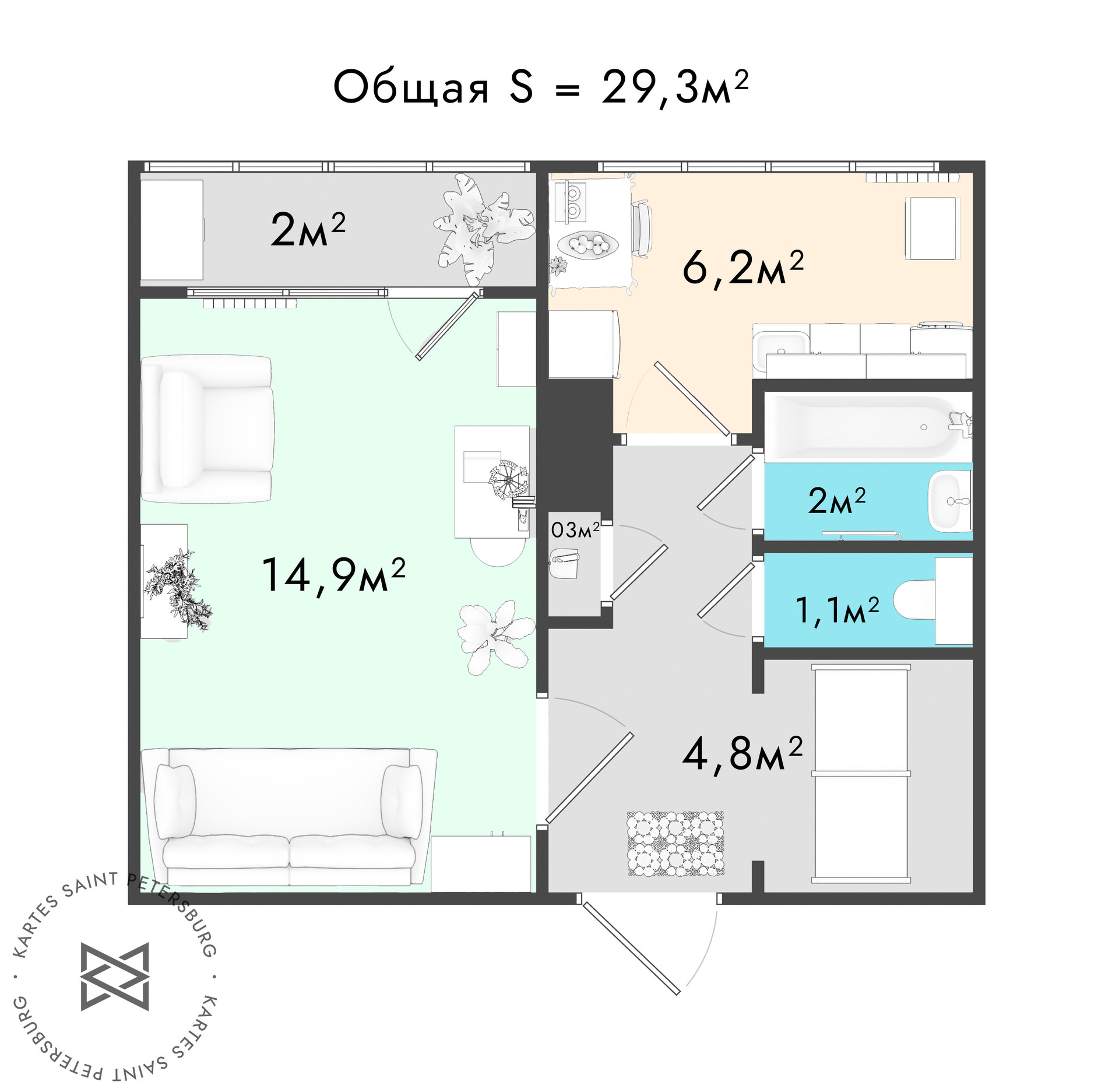 Общая площадь 29.3 м2