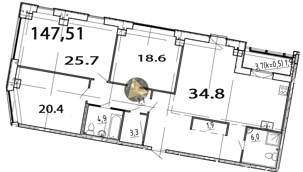 - Общая площадь квартиры 147,51 м2.
