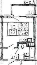 Общая площадь 24 м2