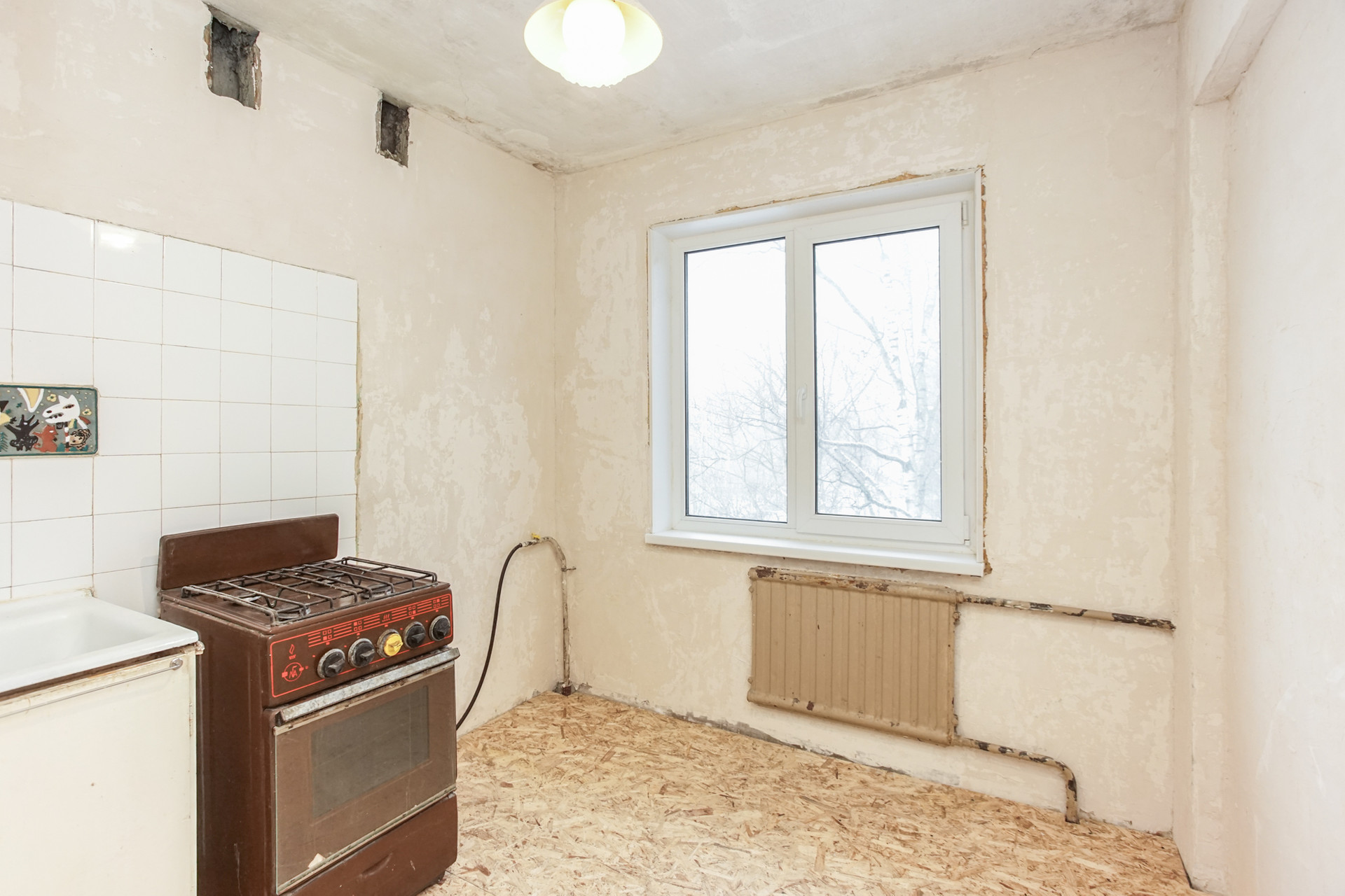 В квартире требуется ремонт. На кухне уже сделаны подготовительные работы- подчистовая отделка! Окна выходят на зеленый двор и детский сад.