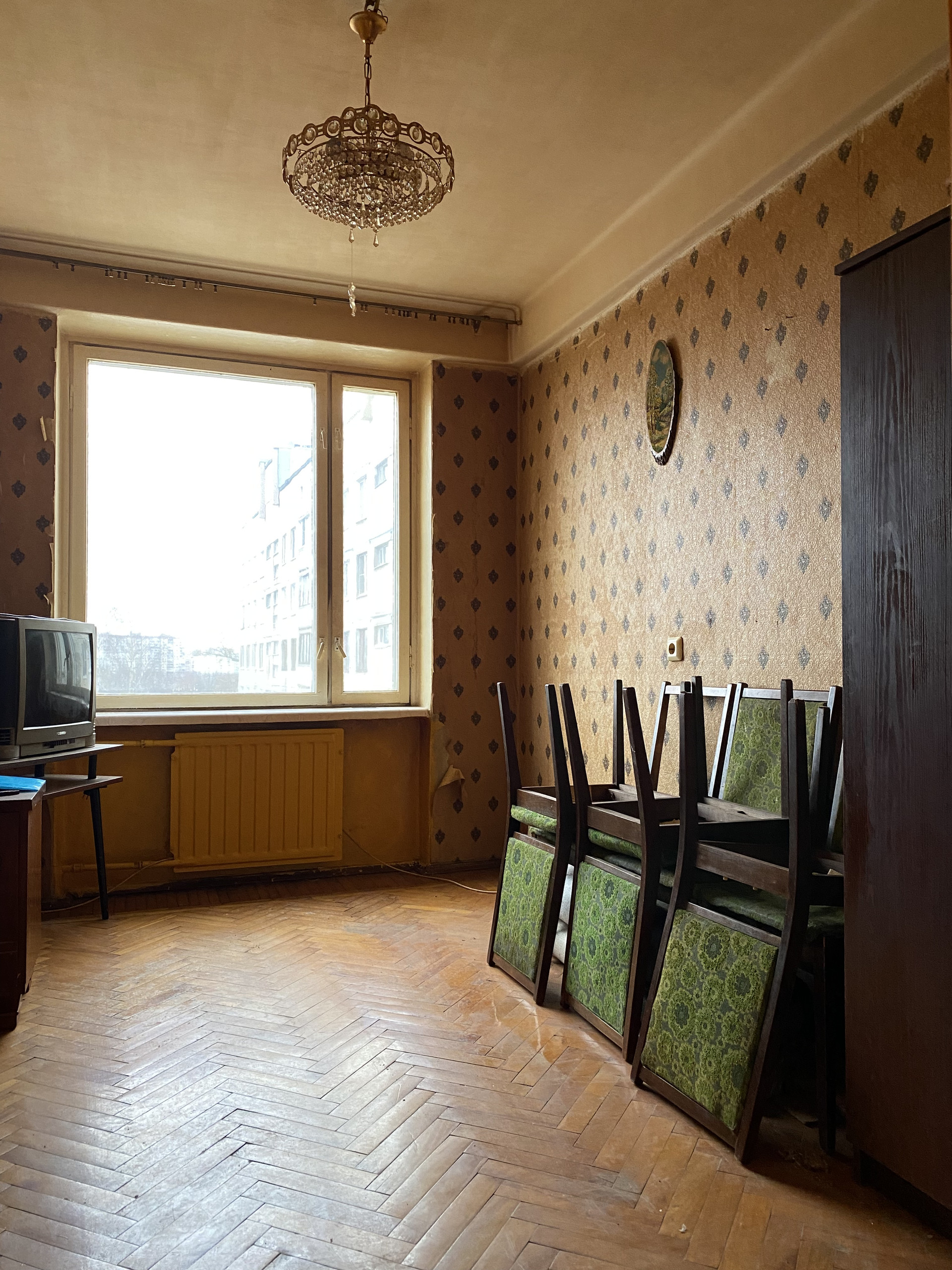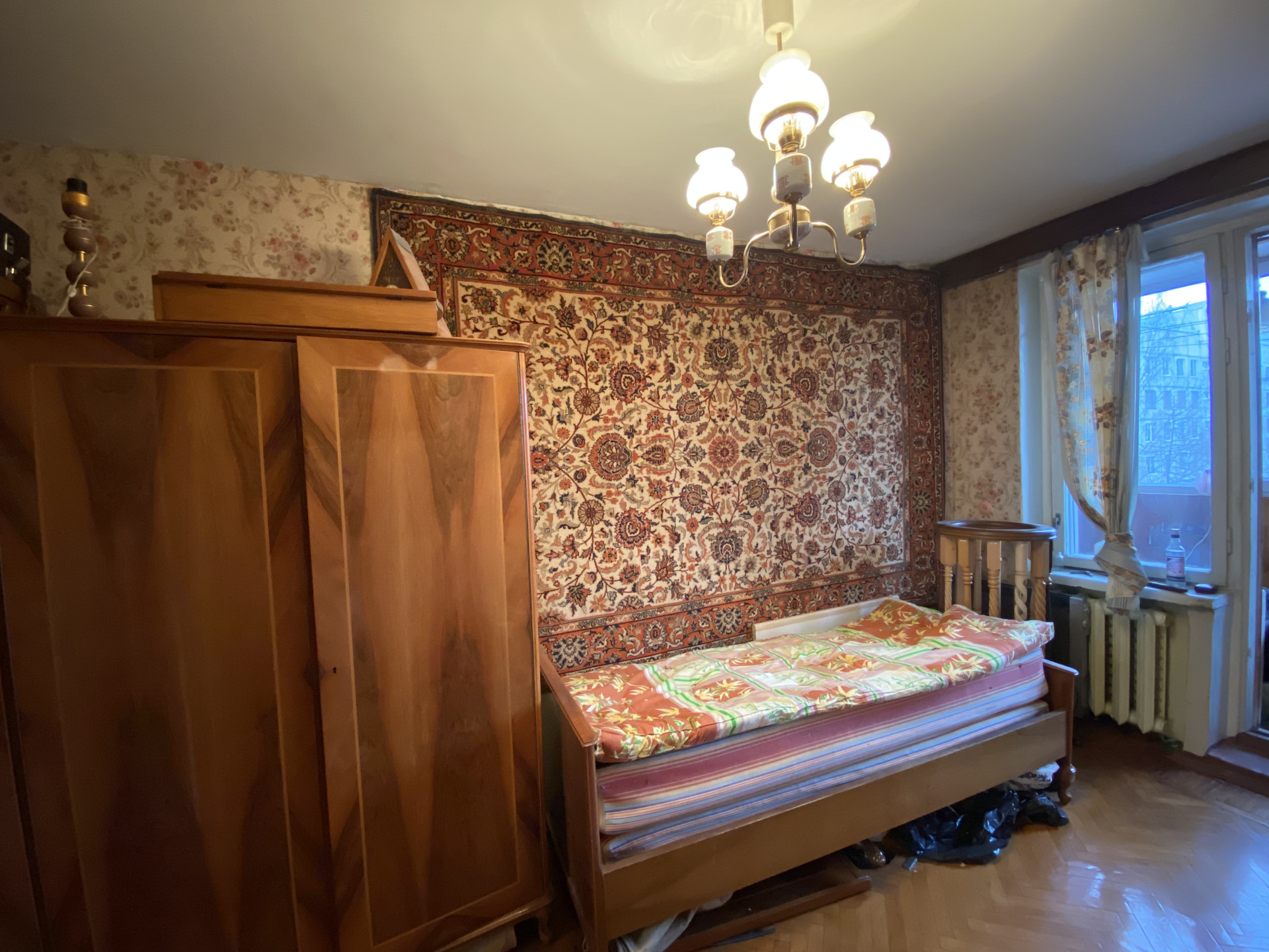 На окнах отремонтированные деревянные рамы, на полу паркет в отличном состоянии.