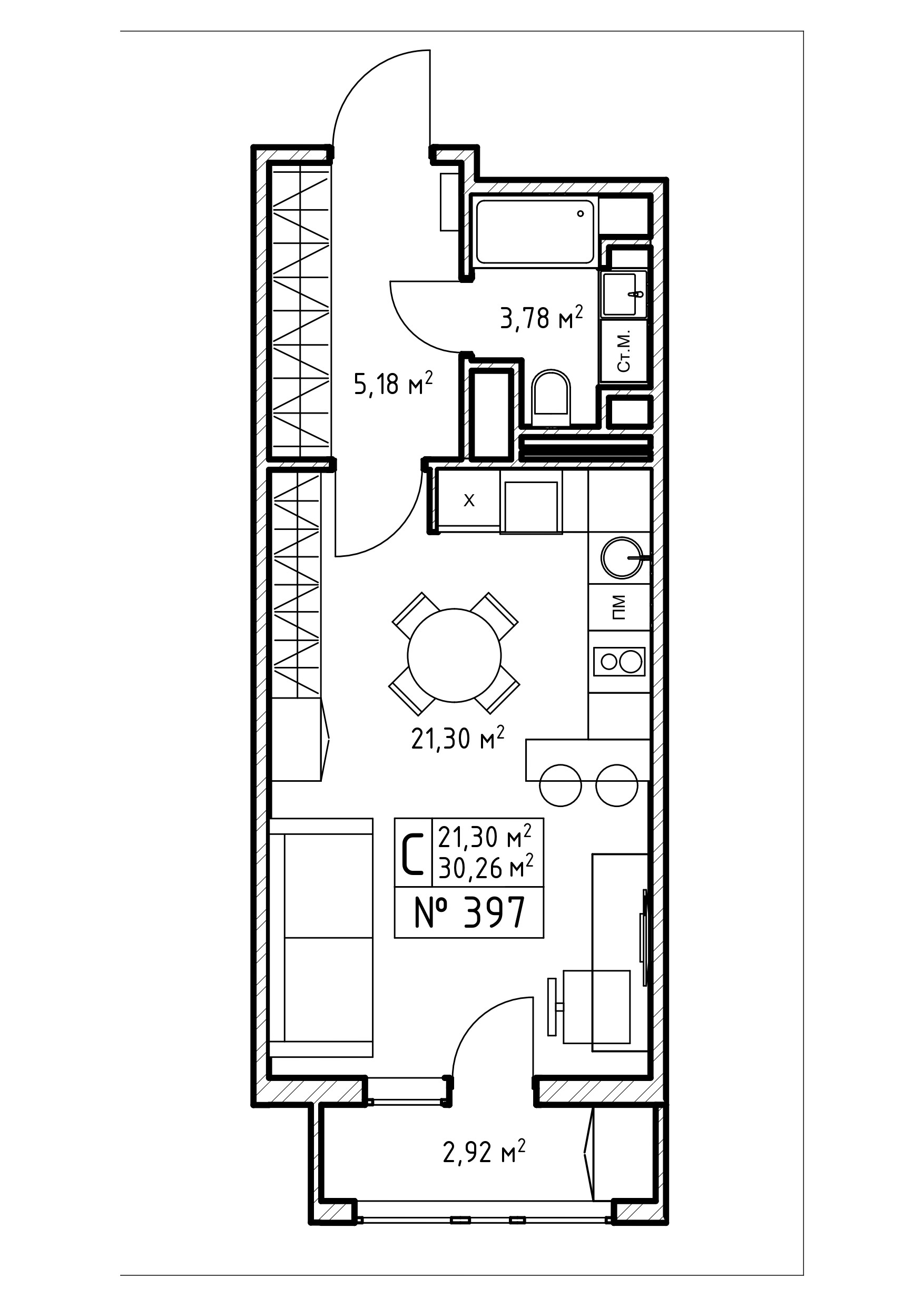 Общая площадь 30.3 м2
