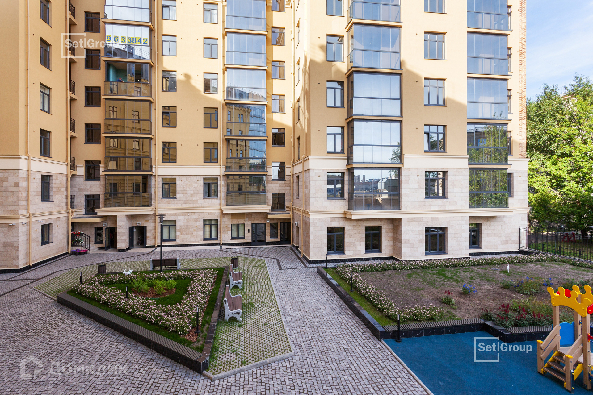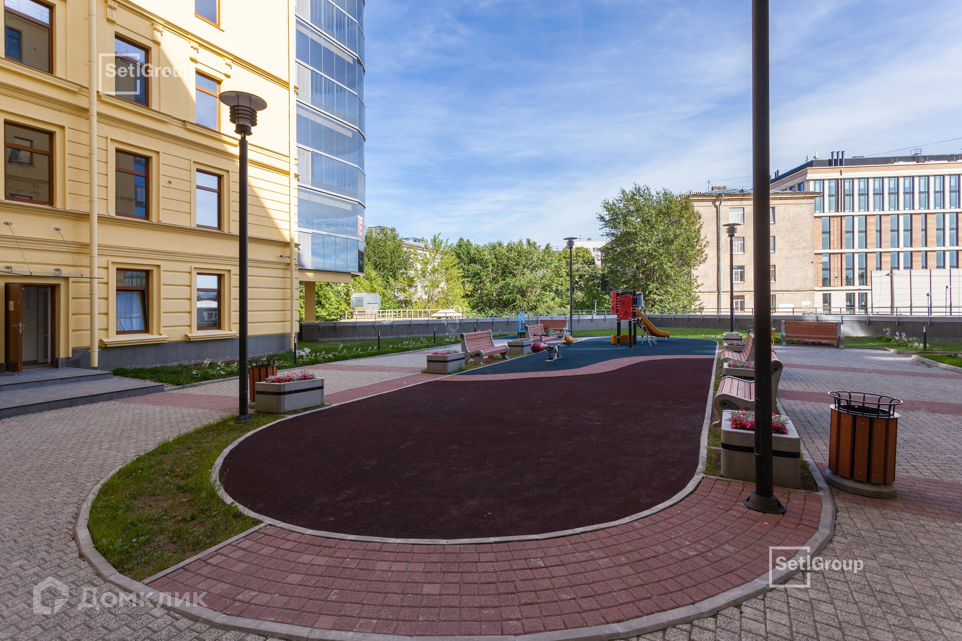 На верхних этажах представлены мансарды с высокими скошенными потолками и панорамными окнами, истинно петербургские квартиры с квадратными эркерами. Лоджии с панорамным безрамным остеклением от пола до потолка обращены в сторону тихого зеленого двора. В доме нет повторяющихся видов из окон: в зависимости от этажа и крыла меняется перспектива, с новой стороны раскрывается город.