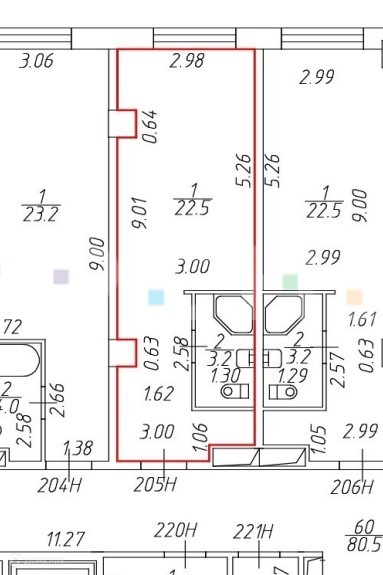 Общая площадь 25.7 м2