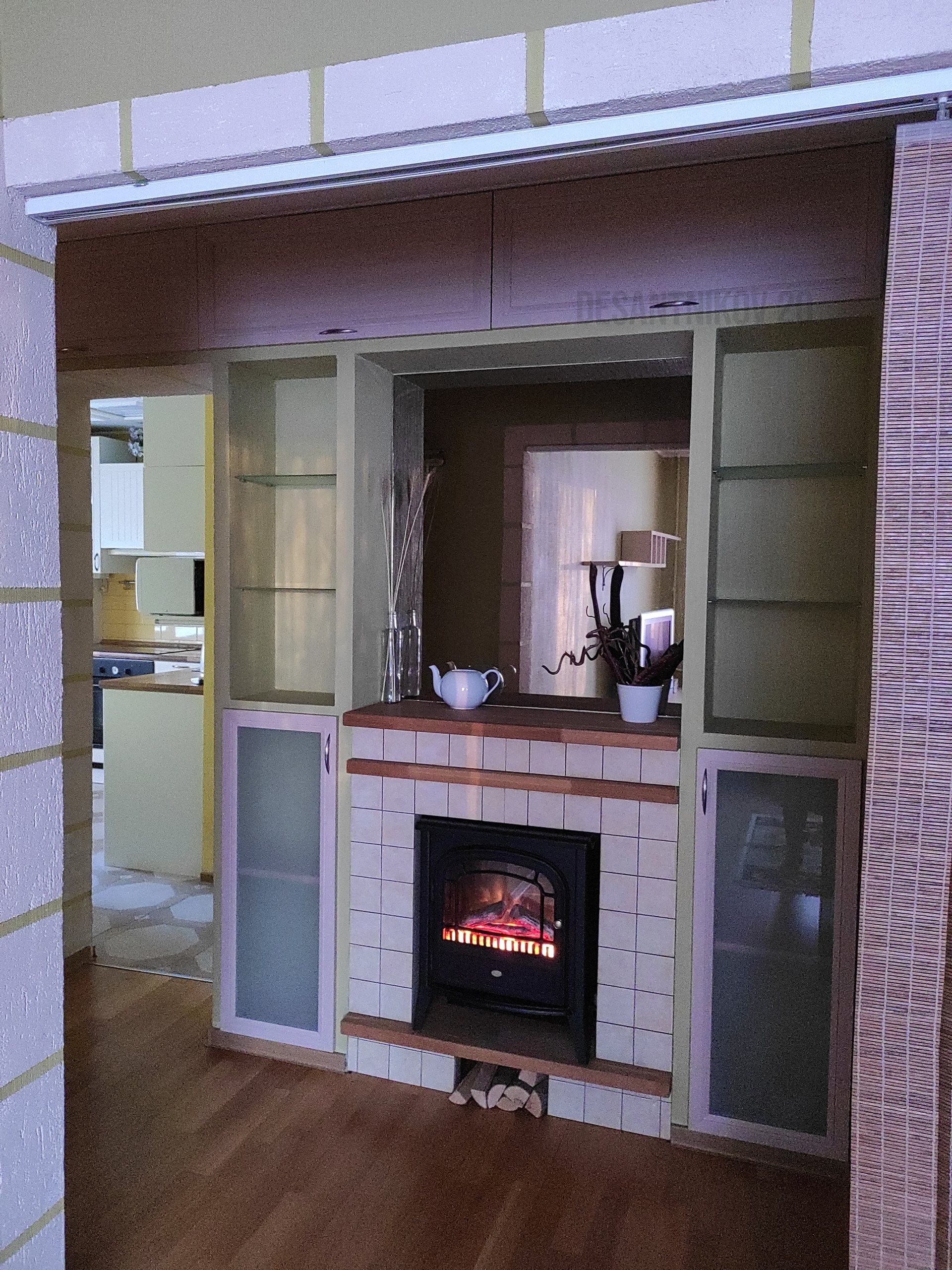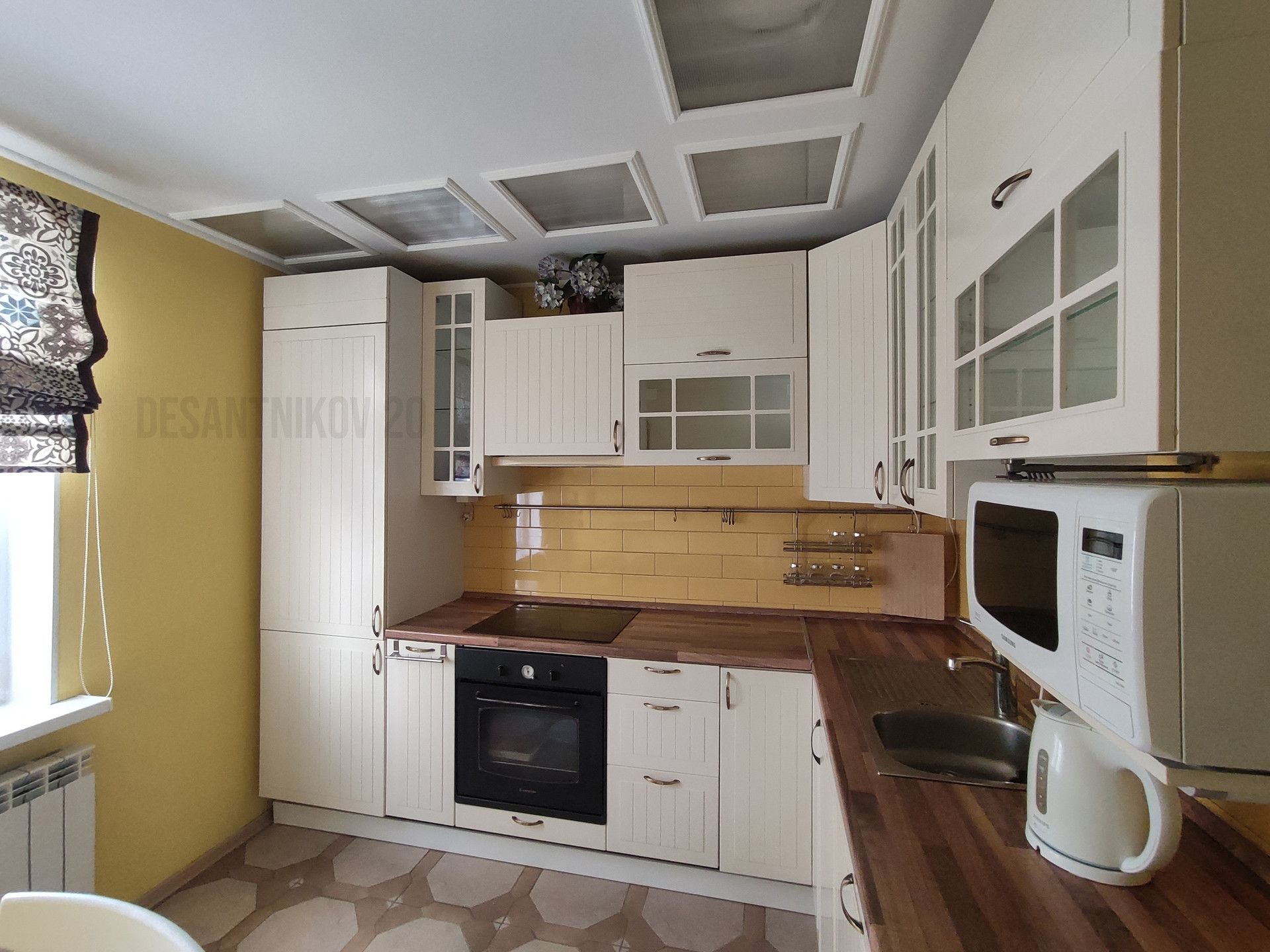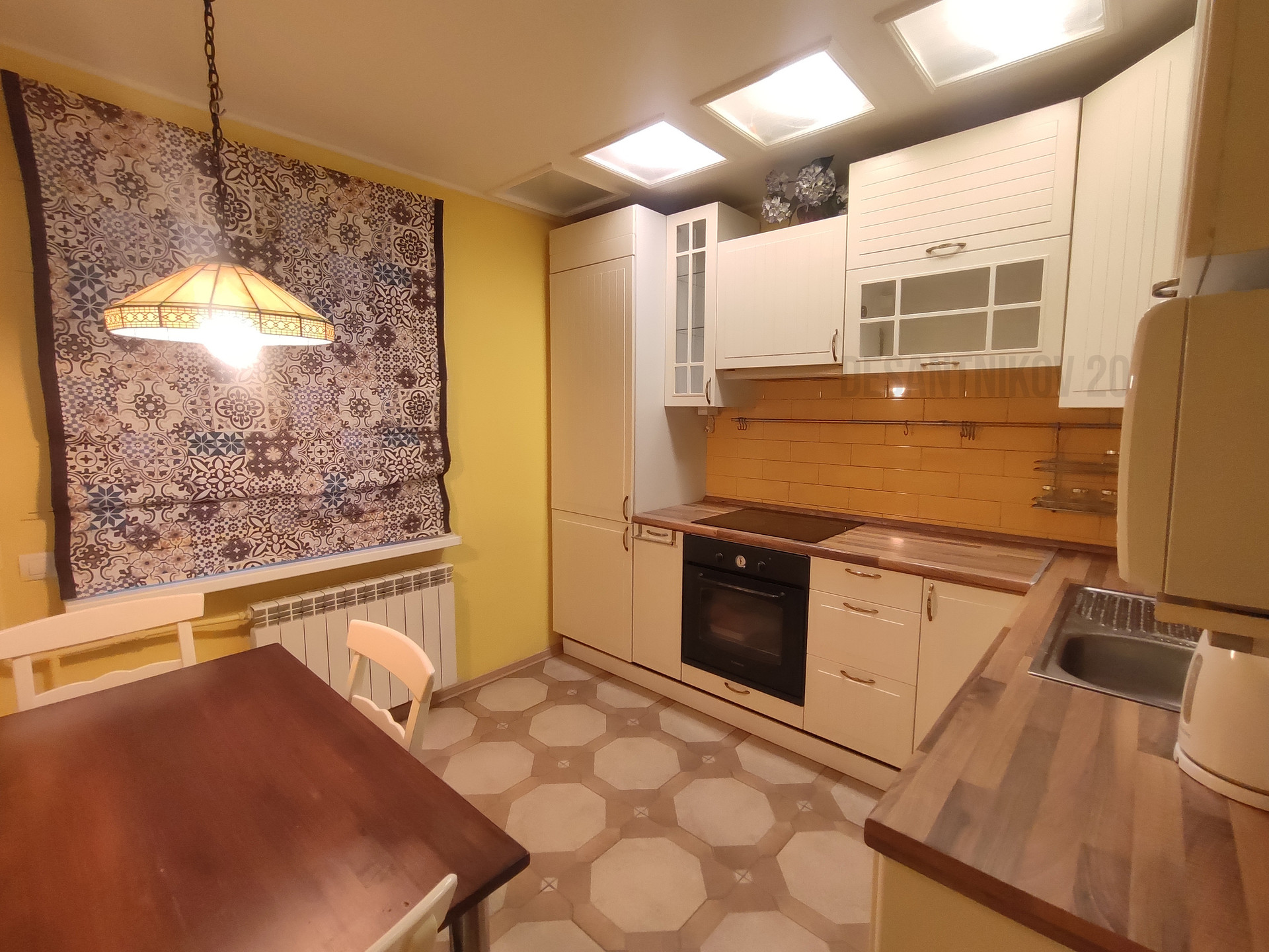 В квартире всё аккуратно, можно заехать без дополнительного ремонта. Встроенная мебель остается: кухня, все шкафы, техника, электрокамин; остальную мебель можем вывезти или оставить по договоренности с покупателем. Под плиткой эл.теплые полы, в комнатах паркетная доска, обои под покраску (можно менять цвет стен на ваш вкус без большого ремонта), много встренных шкафов для хранения вещей; пол, стены, потолок - ровные, все трубы отопления и водоснабжения заменены на металлопластик.