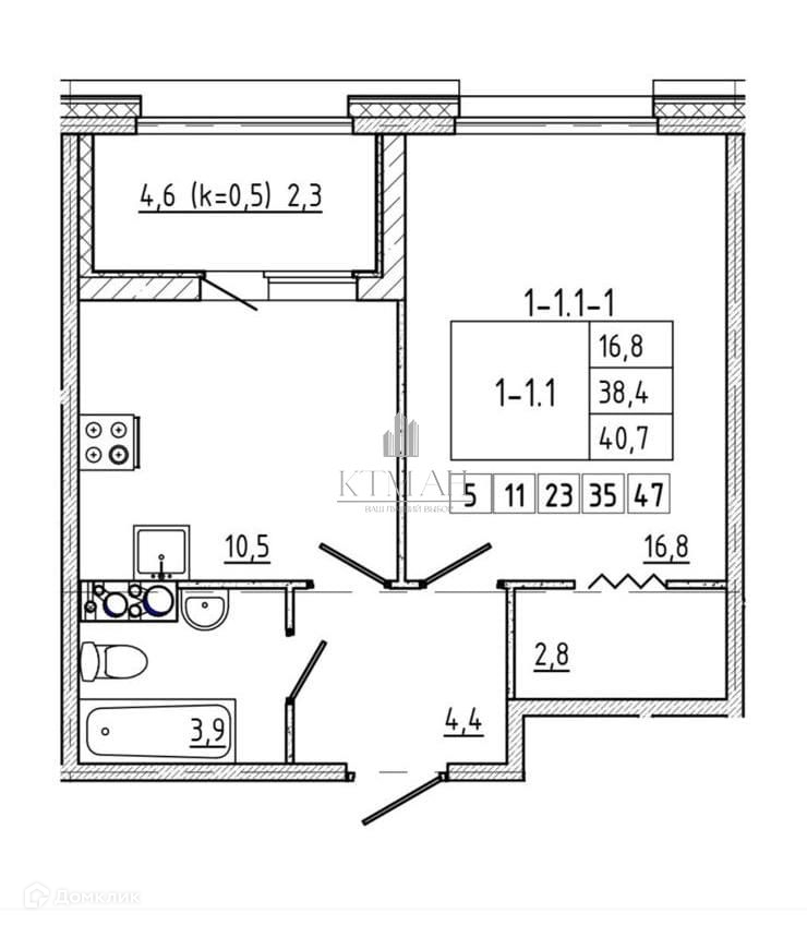 С балконом 40.7. кв.м