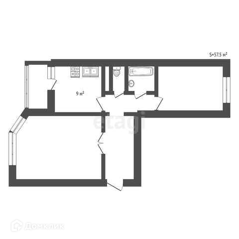 Общая площадь 57.5 м2