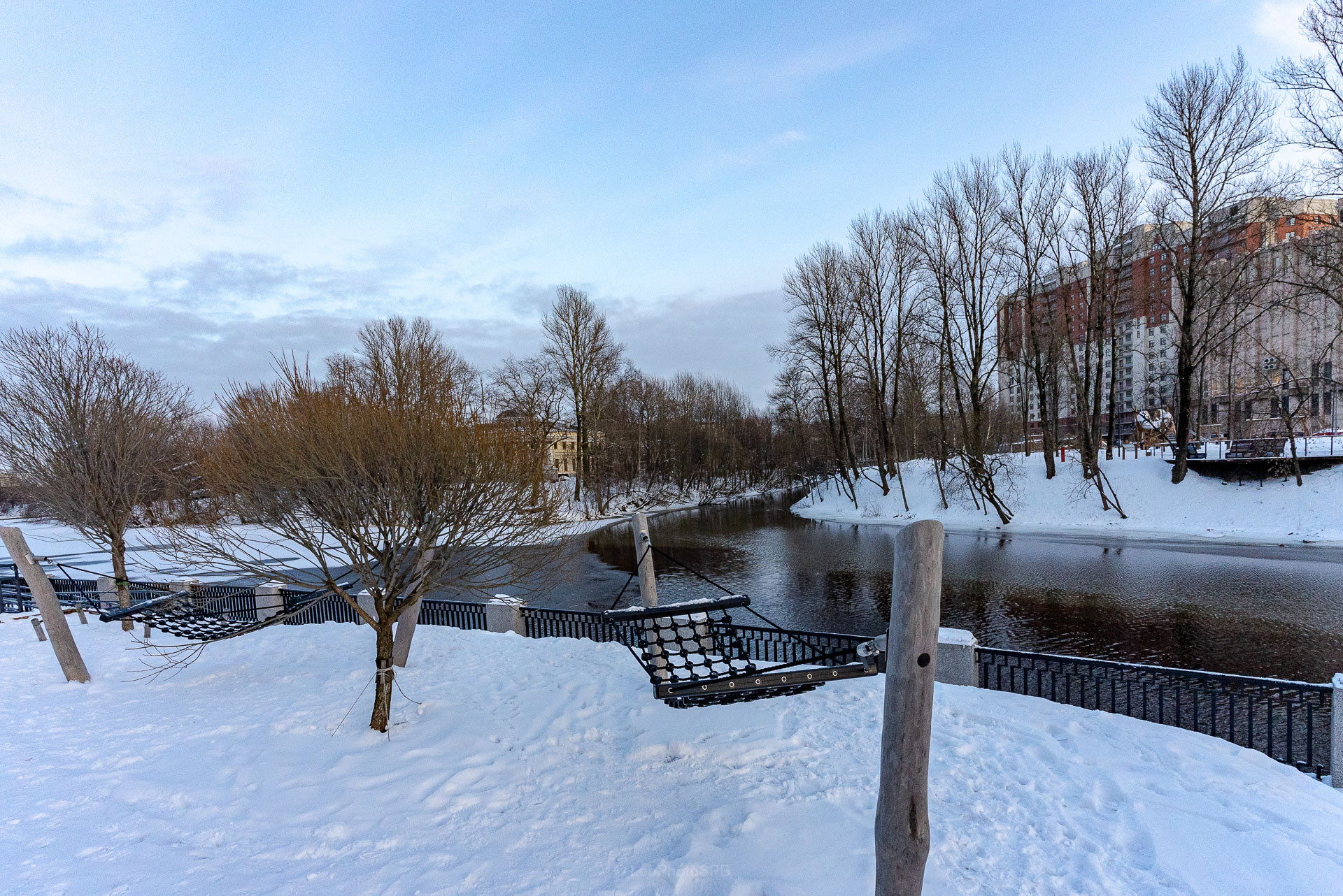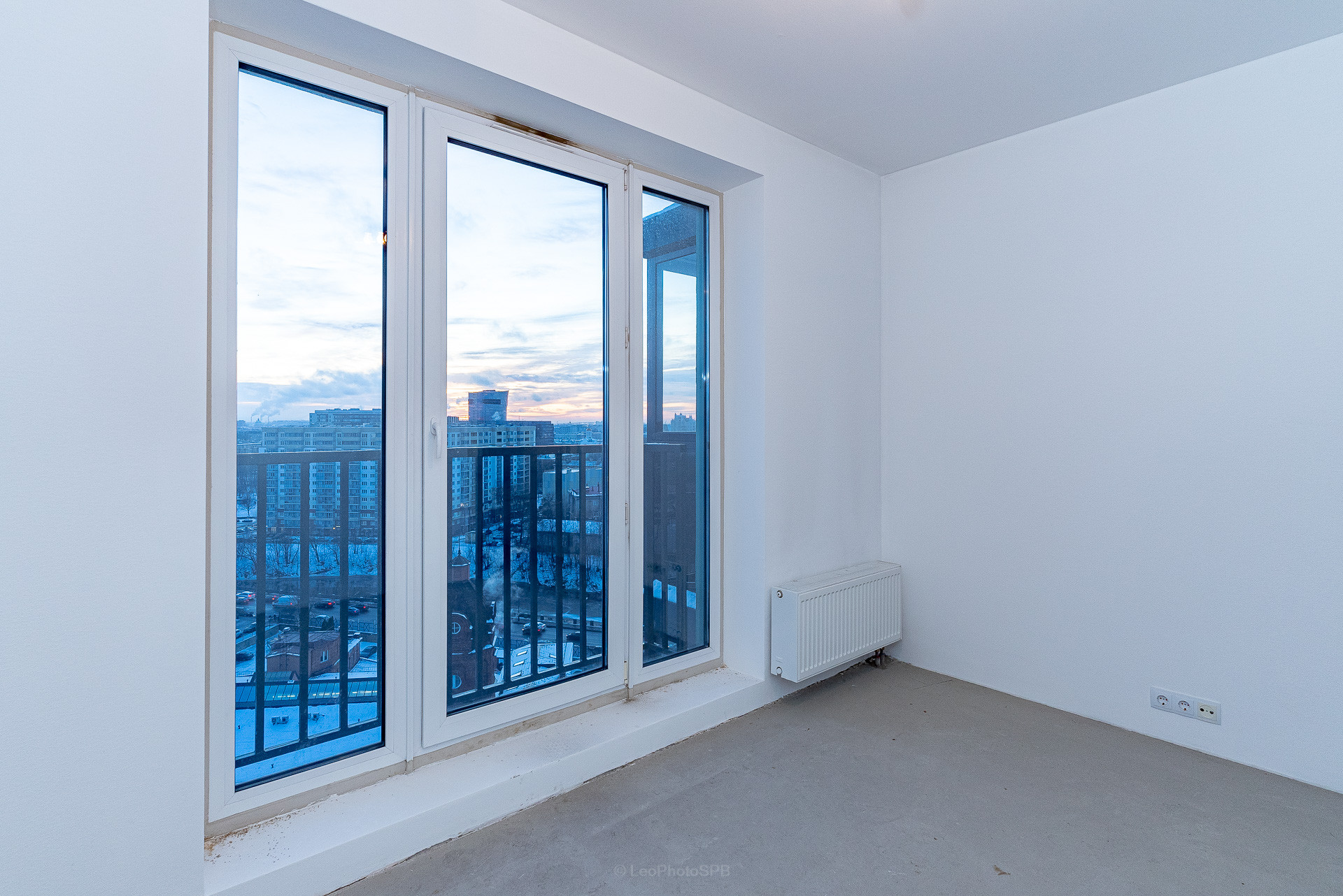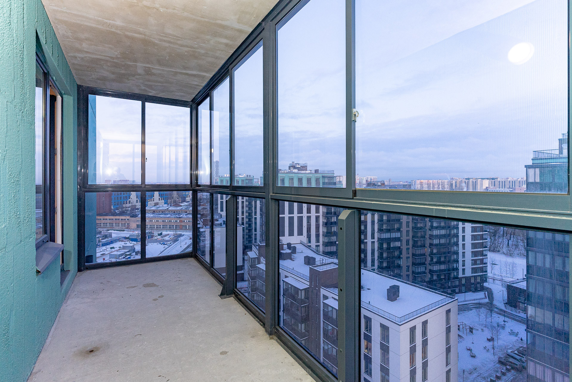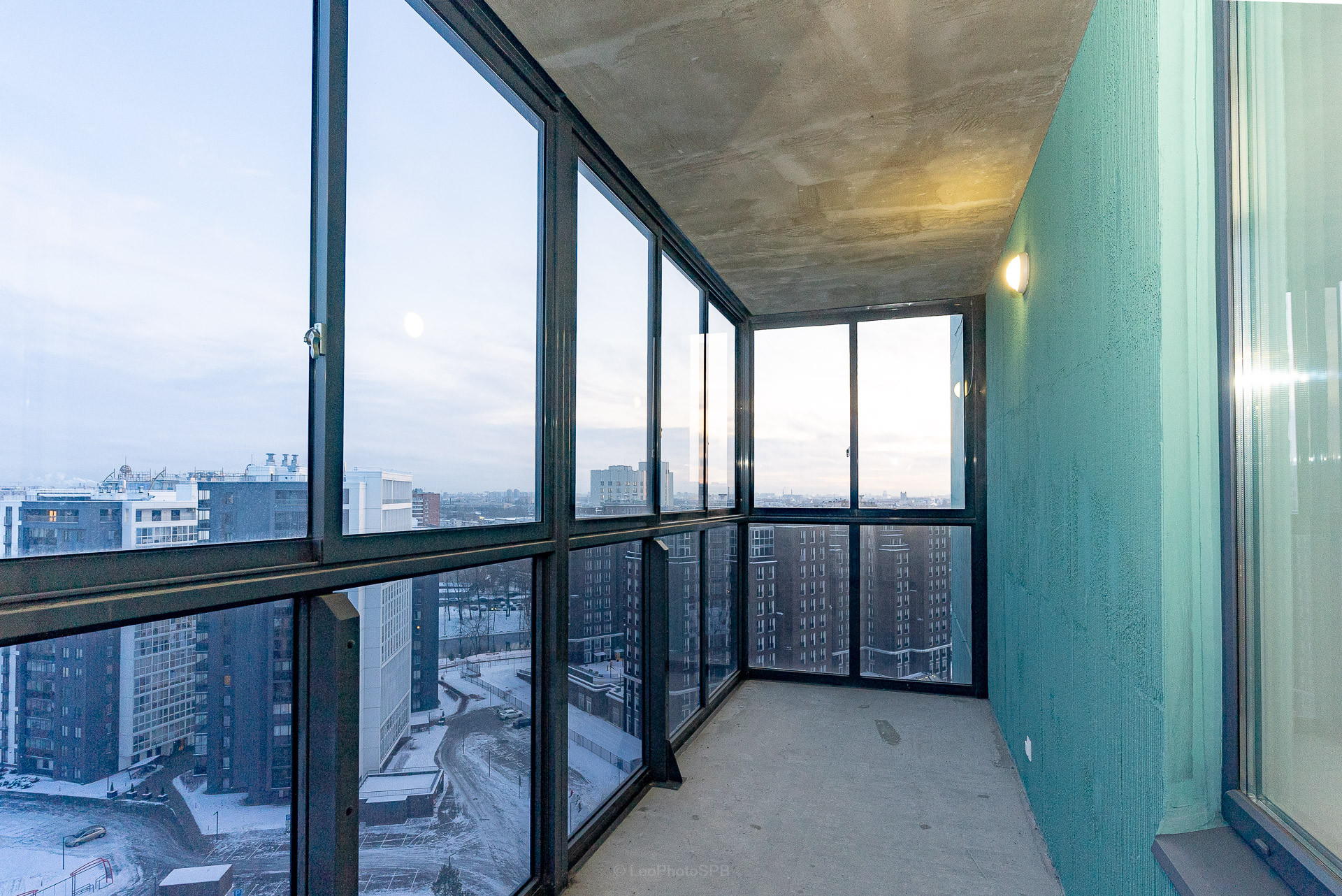 Одним из преимуществ является просторный балкон с панорамным остеклением. С балкона открывается красивый вид на реку Охту и парковую зону.