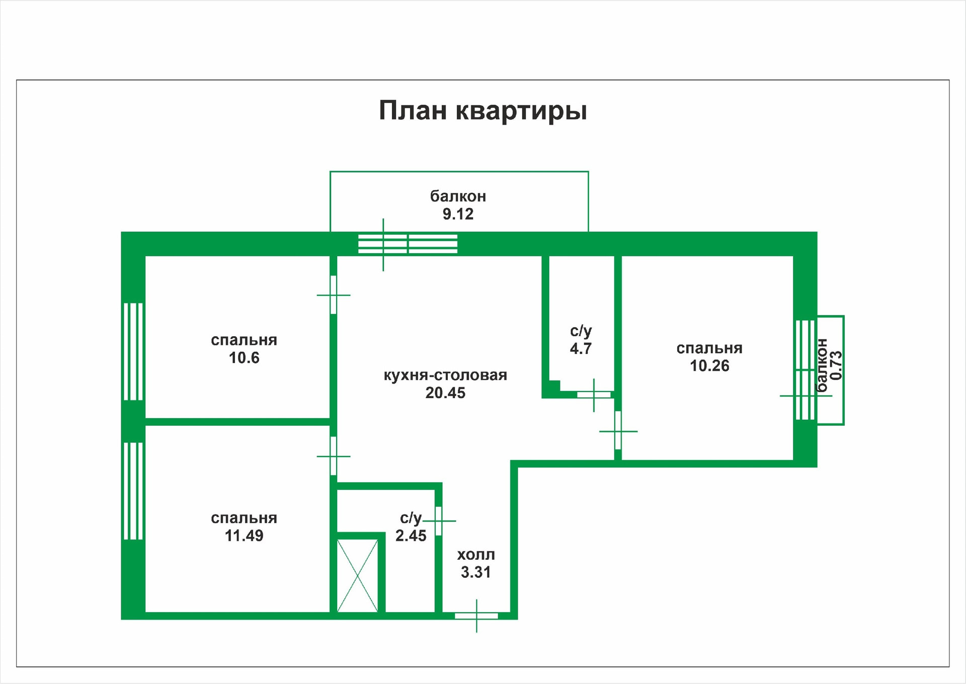 Общая площадь 66 м2