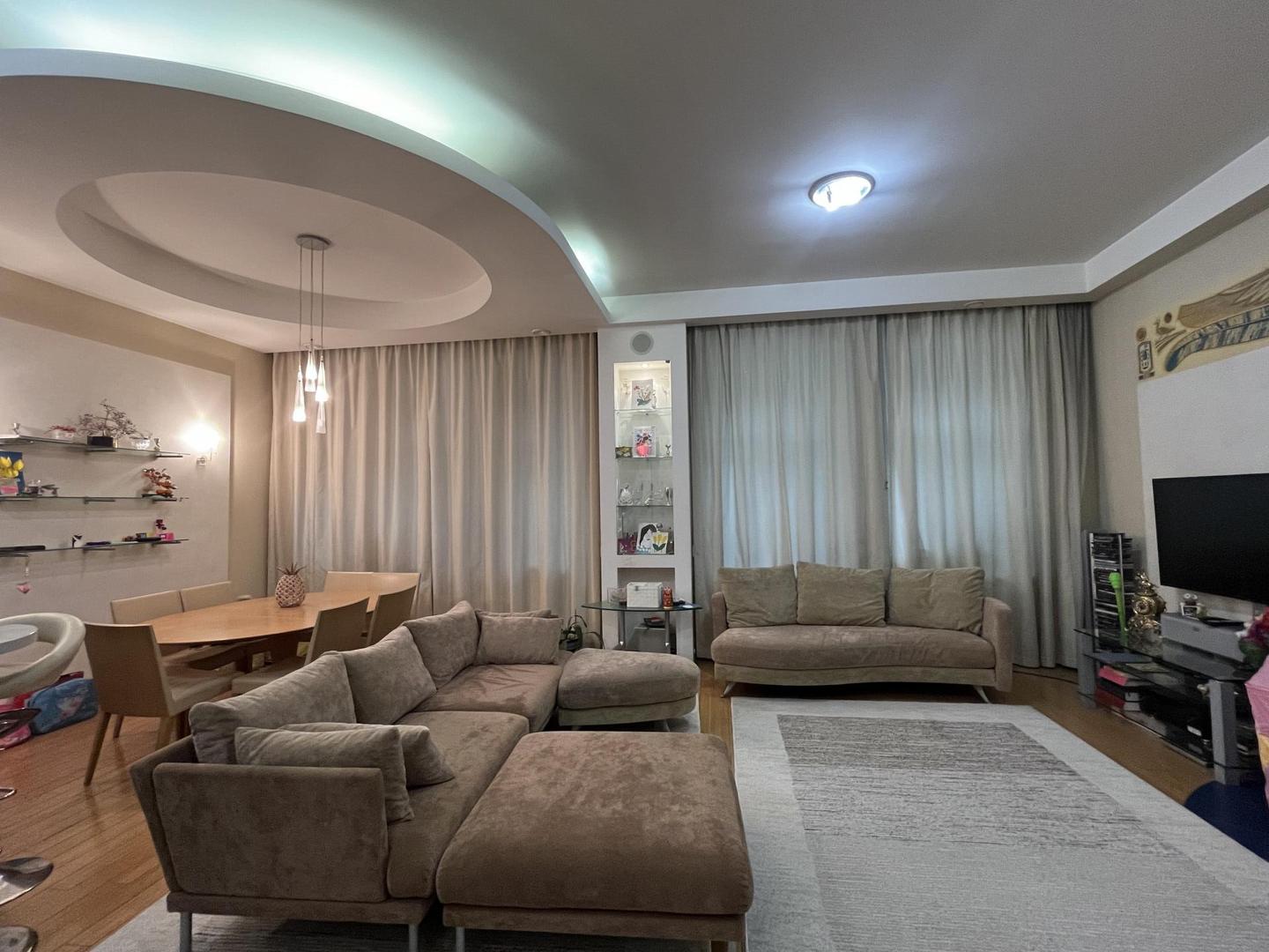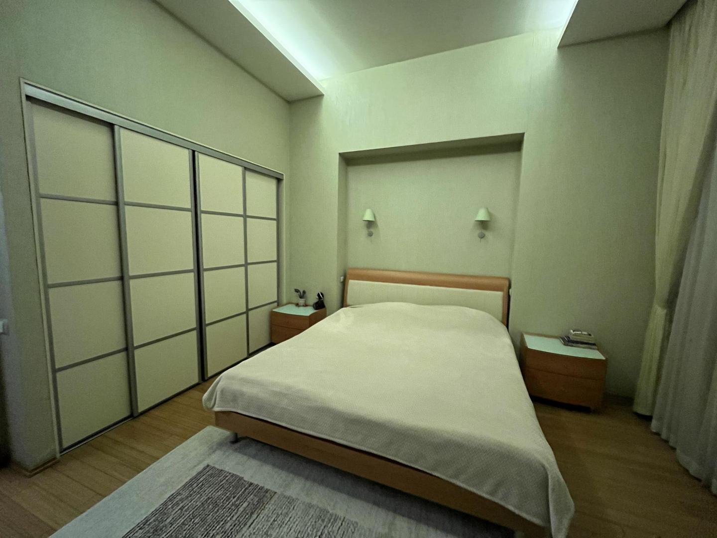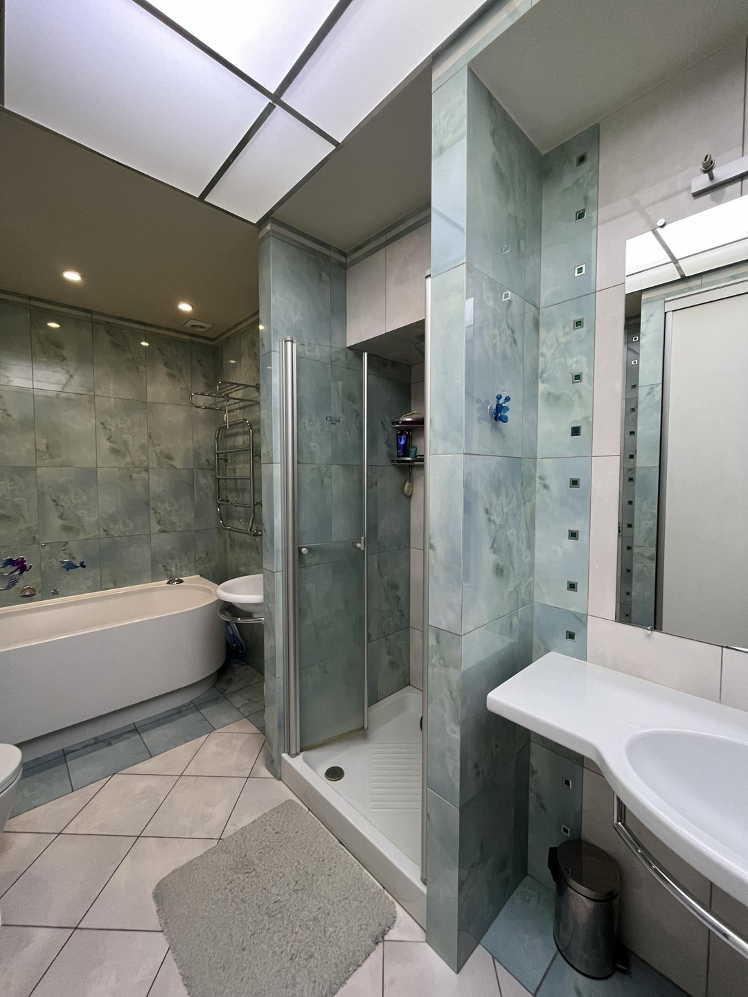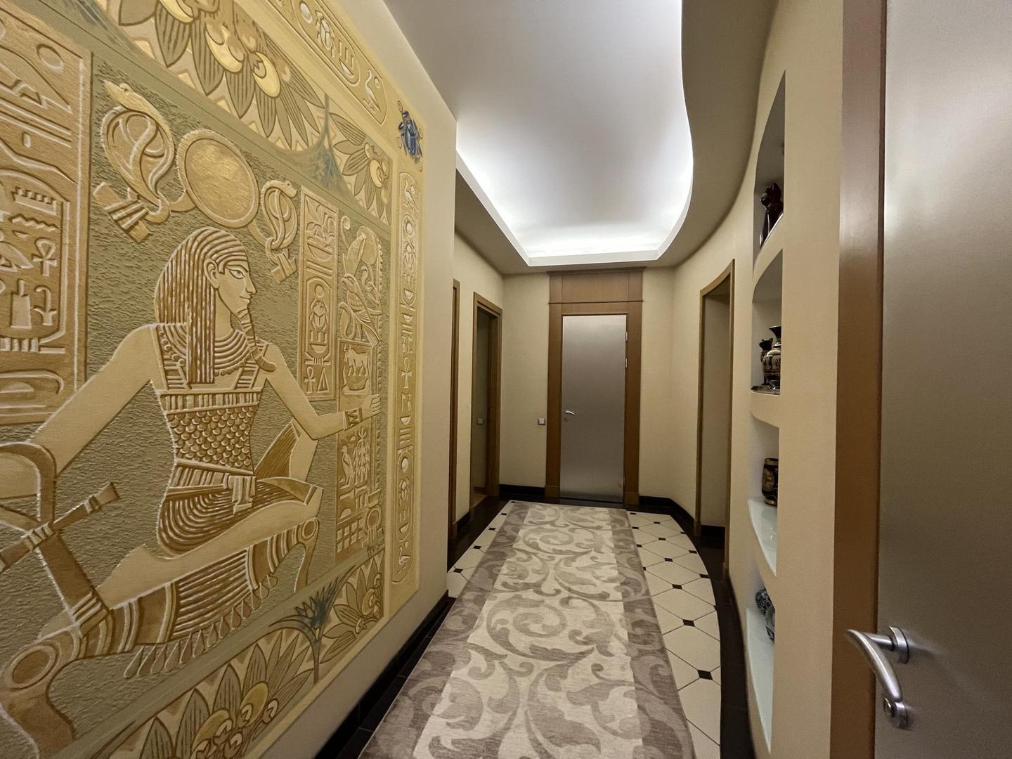 Квартира с очень удобной планировкой общей площадью 130,4кв.м. Состоит из кухни-гостиной с камином площадью 50,6кв.м., трех спален 16,8, 16,1 и 16,8кв.м., просторной прихожей 16,1кв.м., ванной комнатой и гостевым санузлом, оснащённые немецкой сантехникой премиального уровня. Высота потолков 3,3 м. В кухне, прихожей, ванной комнате и санузле теплый пол, в спальнях и гостиной паркет из ценных пород. квартире установлена приточно-вытяжная вентиляция. Европейская бытовая техника, мебель, остаются новому хозяину.