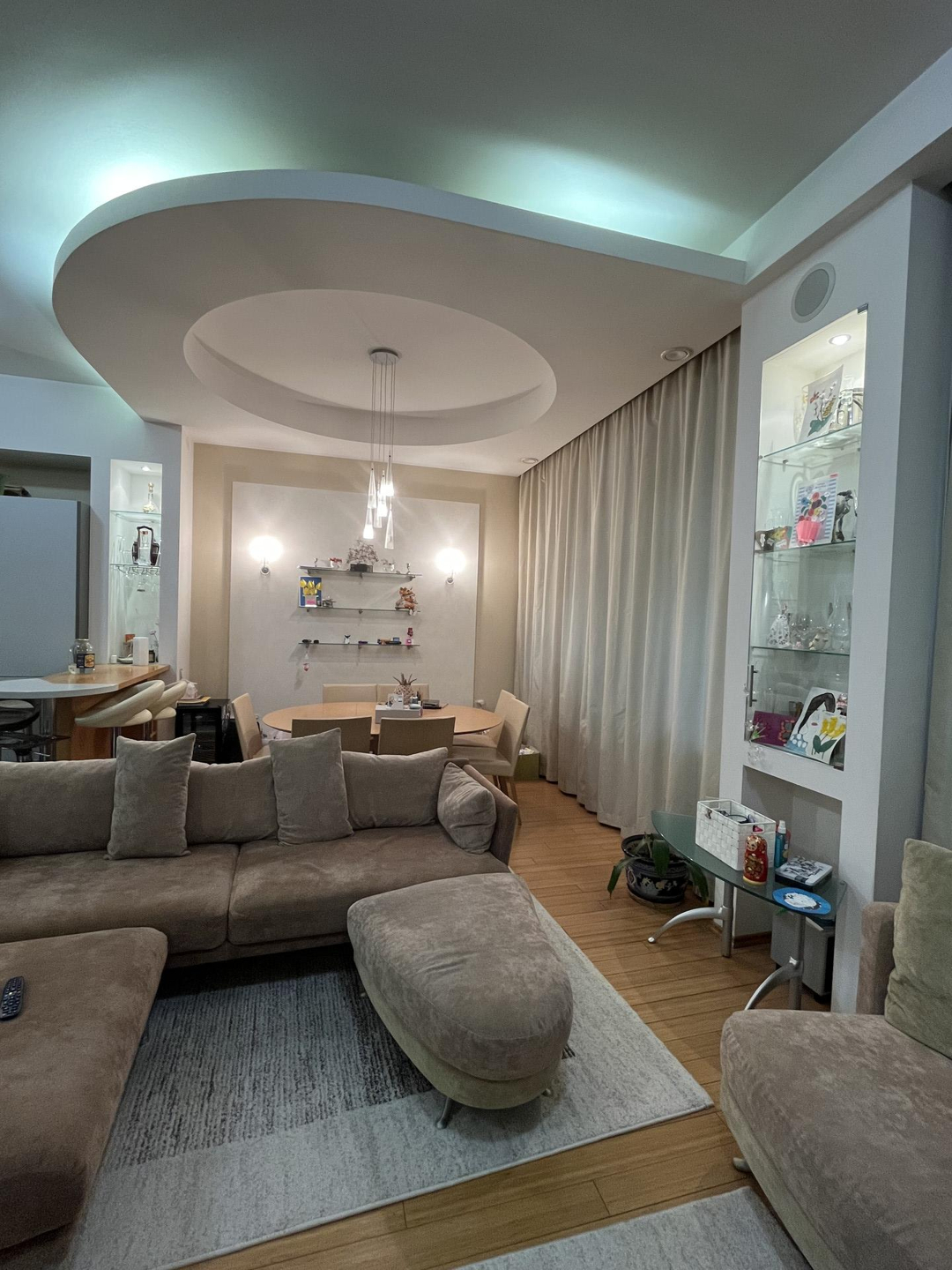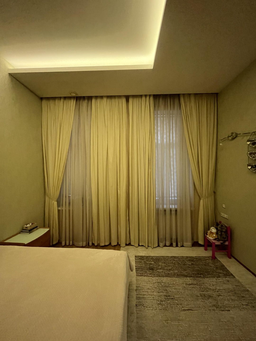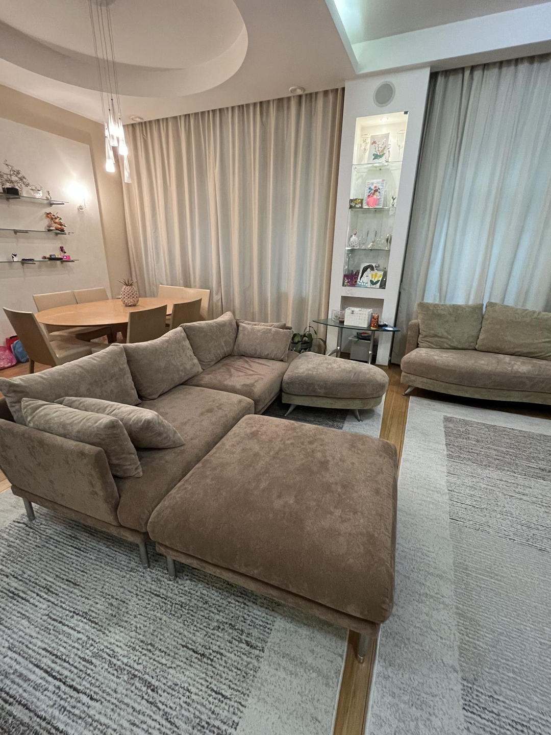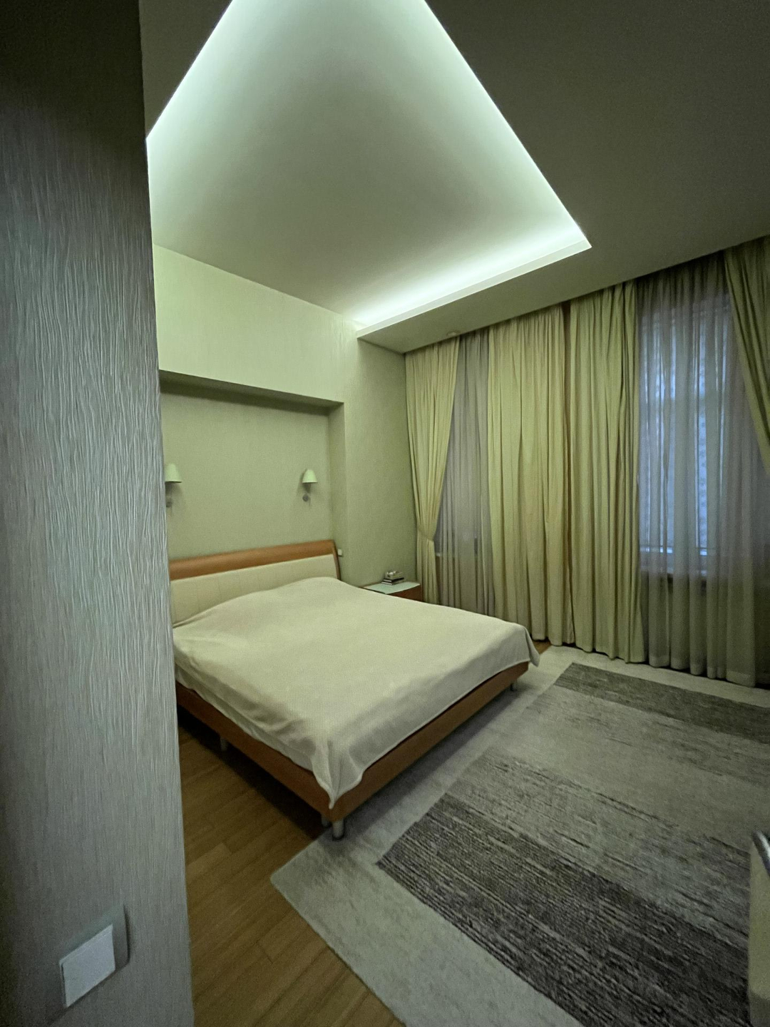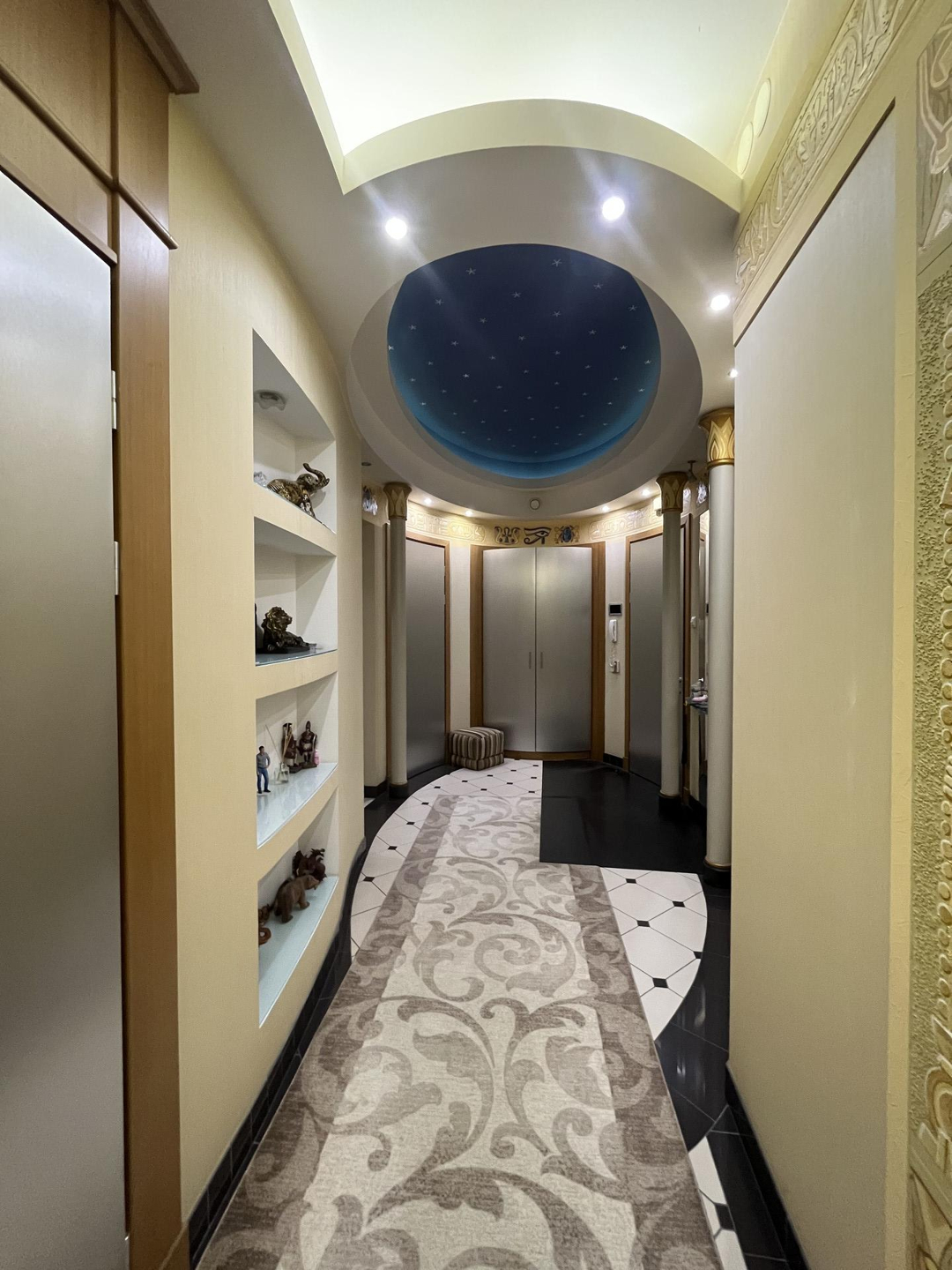 Квартира с очень удобной планировкой общей площадью 130,4кв.м. Состоит из кухни-гостиной с камином площадью 50,6кв.м., трех спален 16,8, 16,1 и 16,8кв.м., просторной прихожей 16,1кв.м., ванной комнатой и гостевым санузлом, оснащённые немецкой сантехникой премиального уровня. Высота потолков 3,3 м. В кухне, прихожей, ванной комнате и санузле теплый пол, в спальнях и гостиной паркет из ценных пород. квартире установлена приточно-вытяжная вентиляция. Европейская бытовая техника, мебель, остаются новому хозяину.