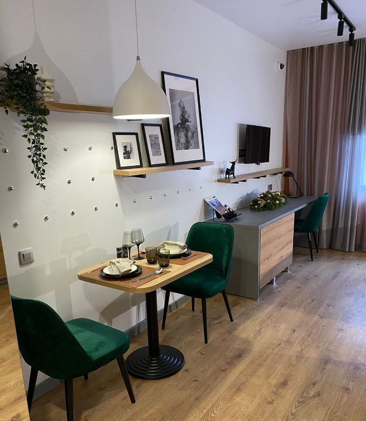Есть опция приобретения пакета меблировки и оснащения, как на фото.
