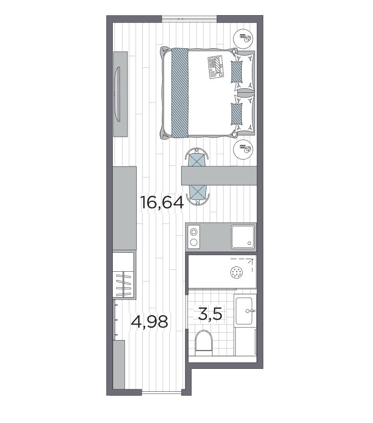 Квартира студия, 25.6 м2, этаж 4 / 12, на продажу в Санкт-Петербурге, Кронштадтская улица, 9к2