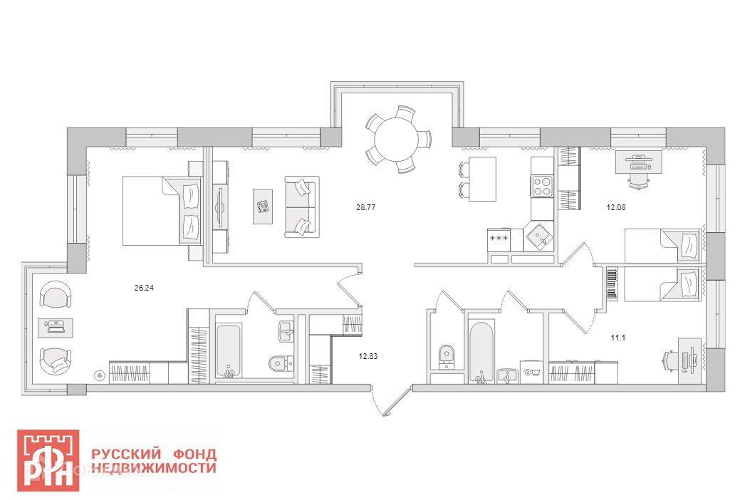Площадь кухни 28.8 м2