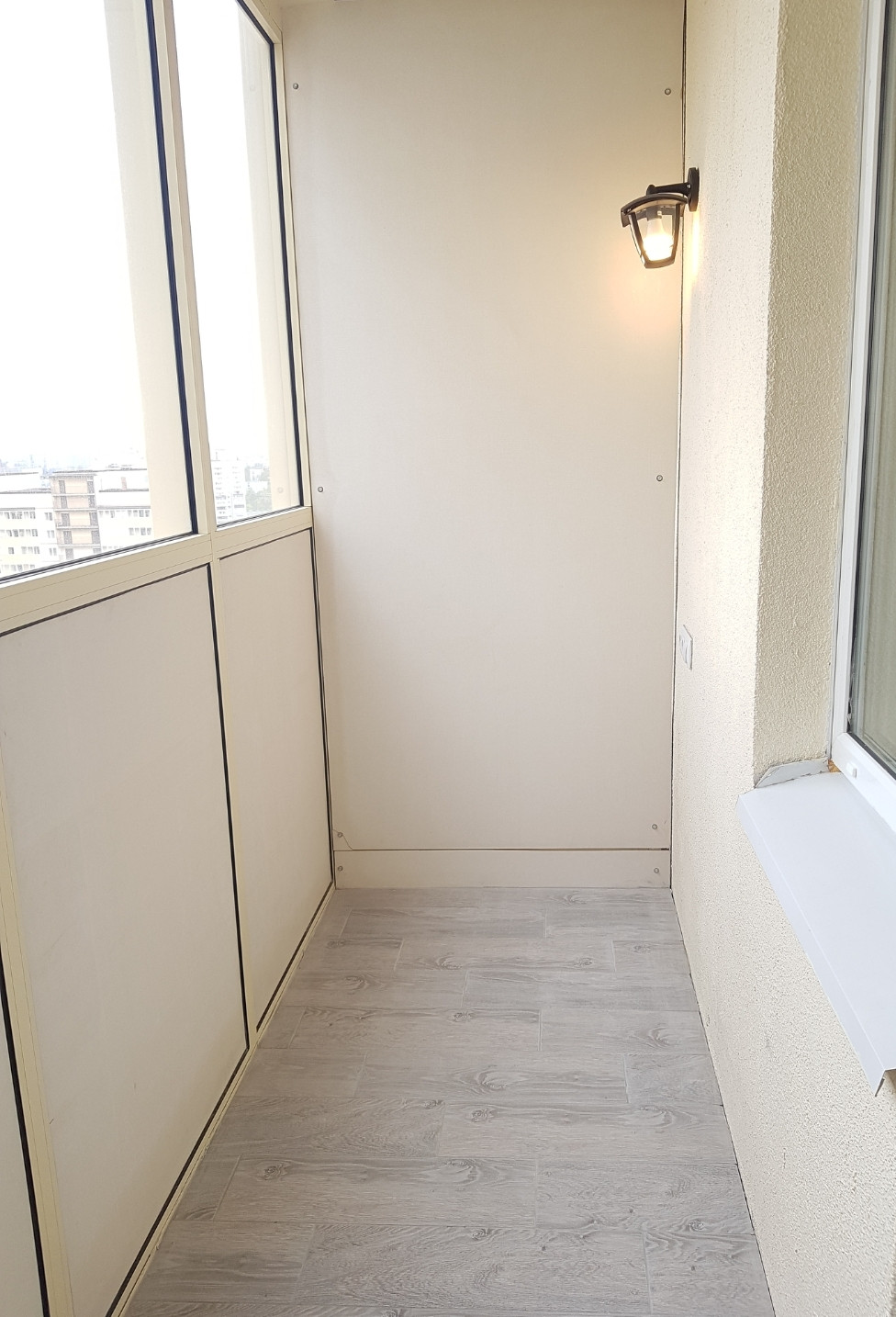 На балкон проведён свет и выведена розетка, можно устроить кабинет.