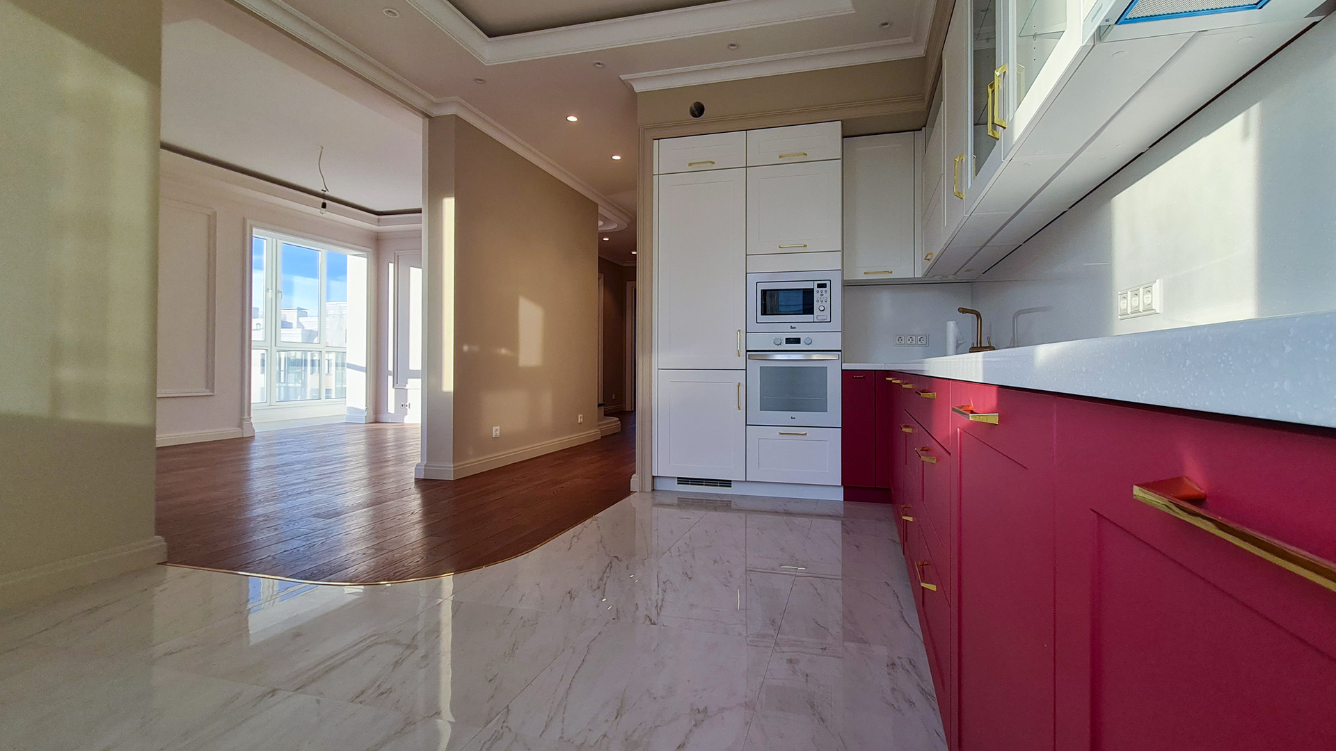 Дом бизнес-класса с закрытой территорией.  Качественный ремонт. Отличный вид. Любая схема взаиморасчетов. После ремонта в квартире никто не проживал. Кухня оборудована мебелью и техникой. Отдельно продается парковочное место в подземном паркинге, в который можно спуститься на лифте. Торг