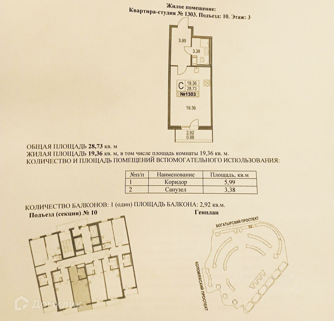 Общая площадь 28.7 м2