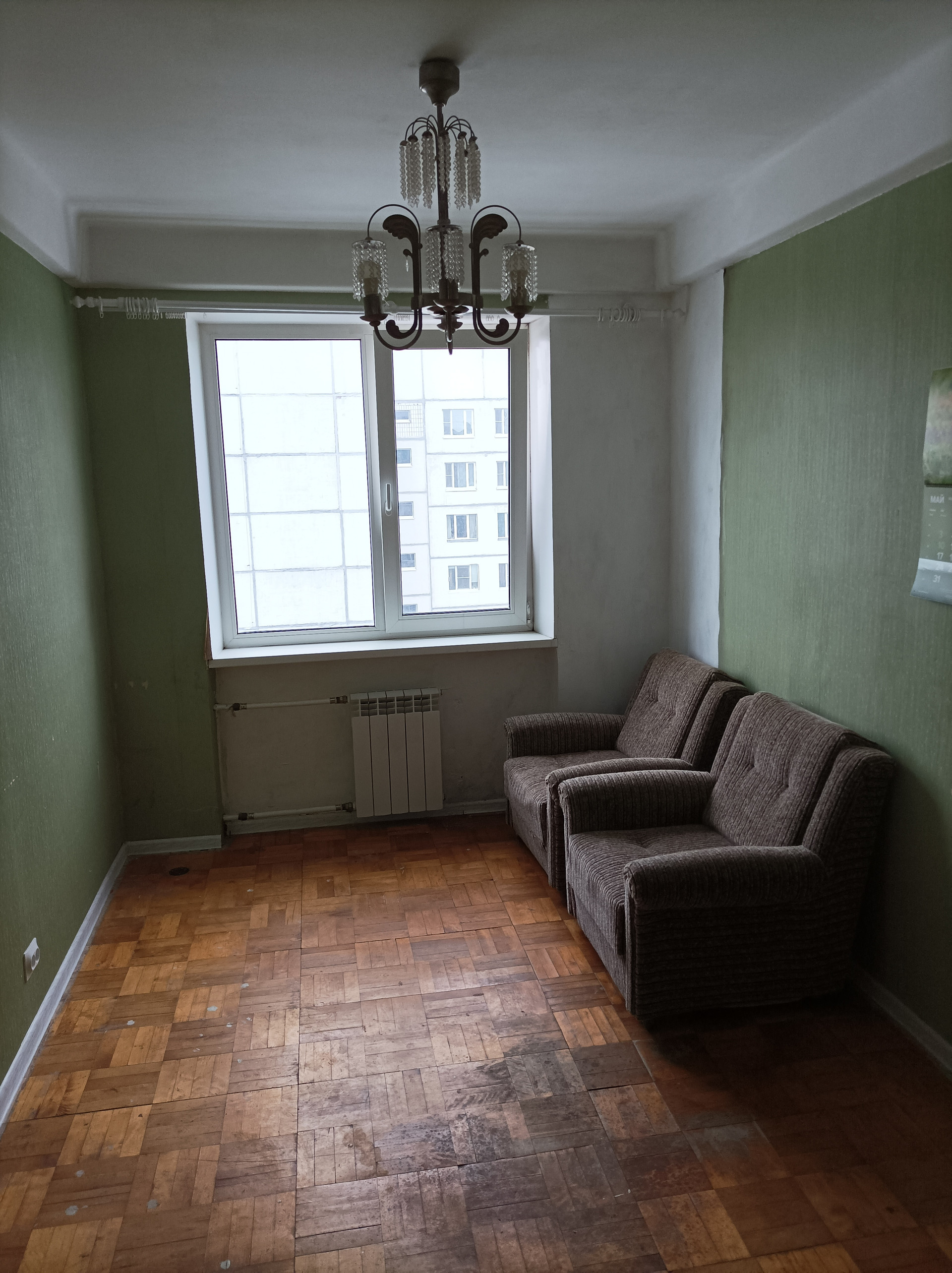 Прямая продажа, без обременений, в собственности более 5 лет, 2 собственника. Квартира расположена  в 5 минутах ходьбы от метро, окна во двор, требует ремонта, в комнатах паркет, заменены окна, в большой комнате витринное окно, заменены радиаторы. Потолки и стены ровные, паркет не имеет сколов. В квартире никто не зарегистрирован.