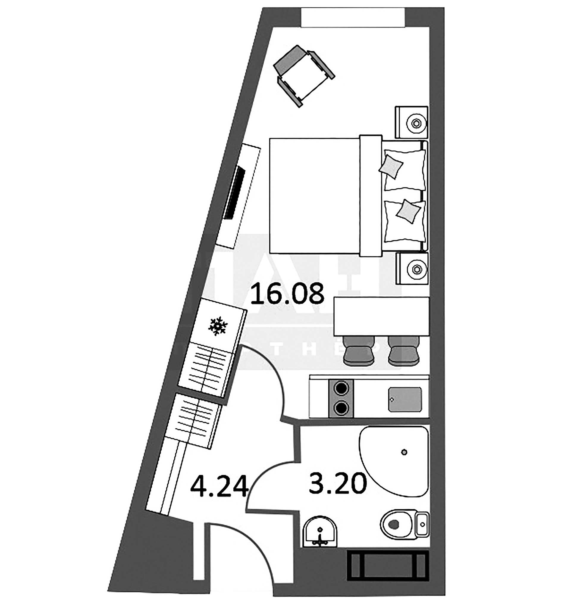 Жилая площадь 16.14 м2