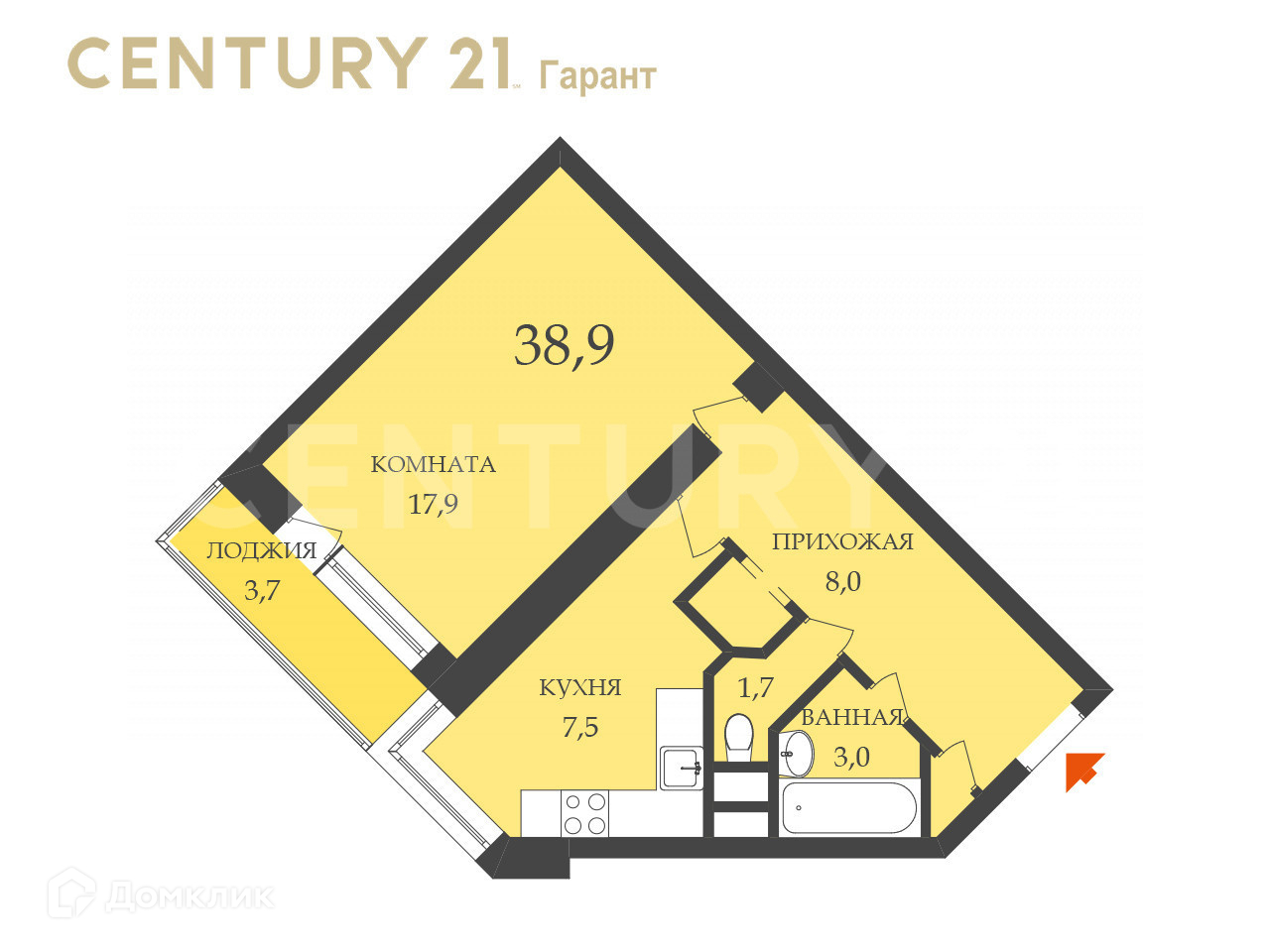 Площадь: 38.9 _кв.м.